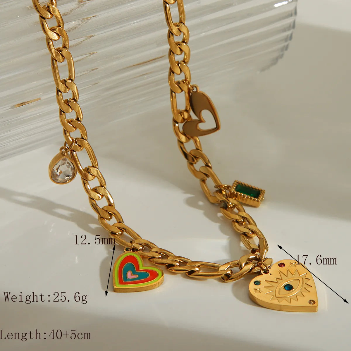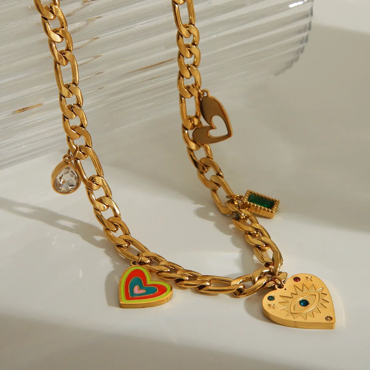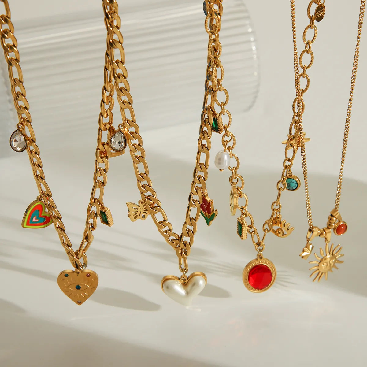 Wholesale Jewelry Retro Classic Style Sun Heart Shape Flower 304 Stainless Steel Acrylic Zircon 18K Gold Plated Epoxy Pendant Necklace