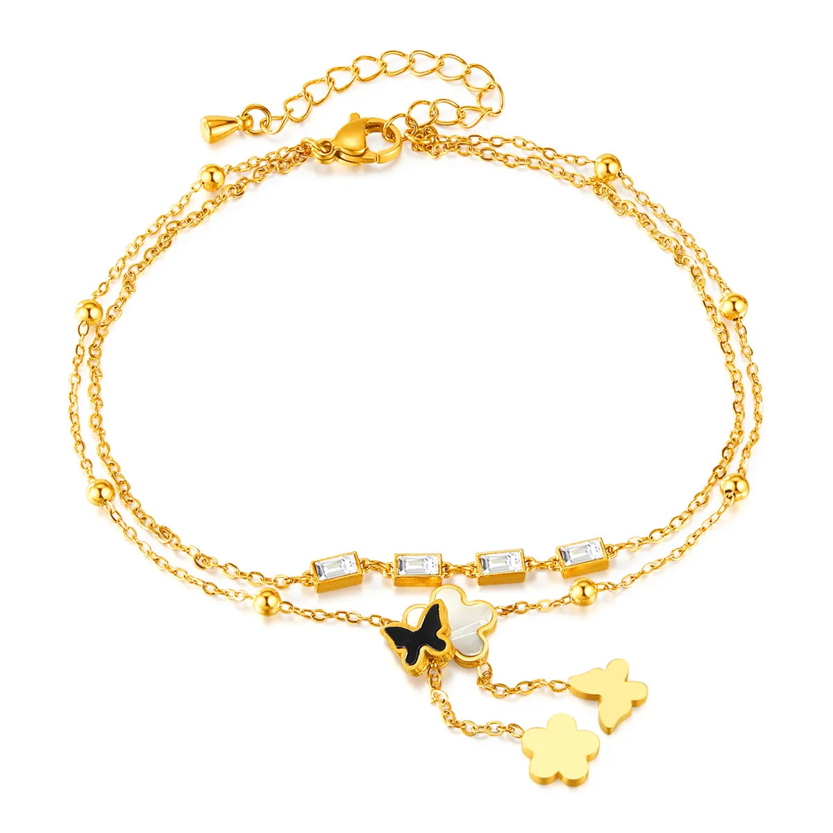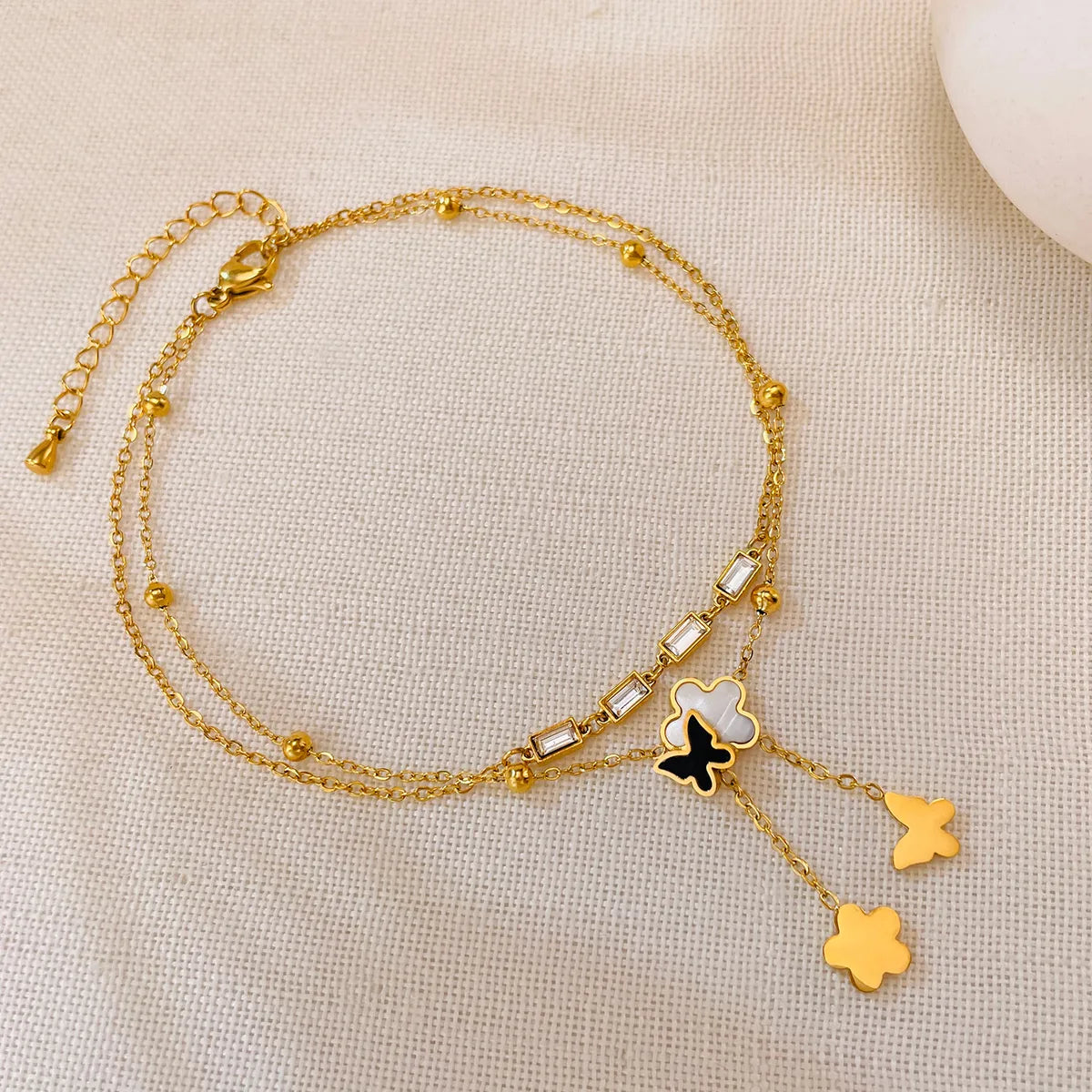 Wholesale Jewelry Simple Style Flower Butterfly 304 Stainless Steel Mother Shell Zircon Inlay Anklet