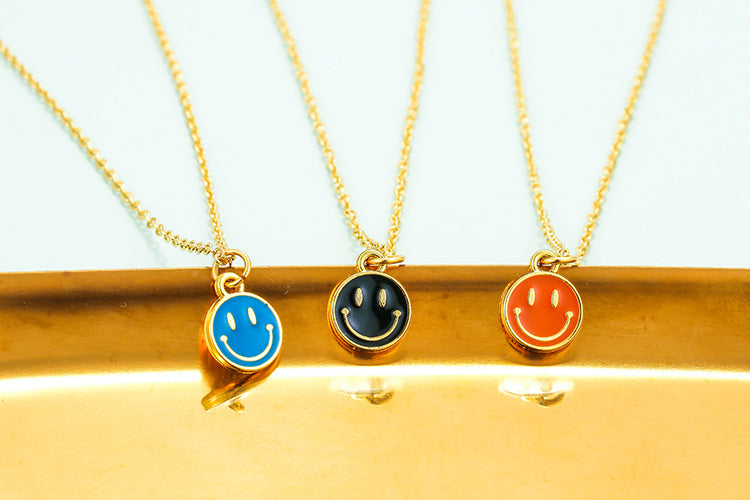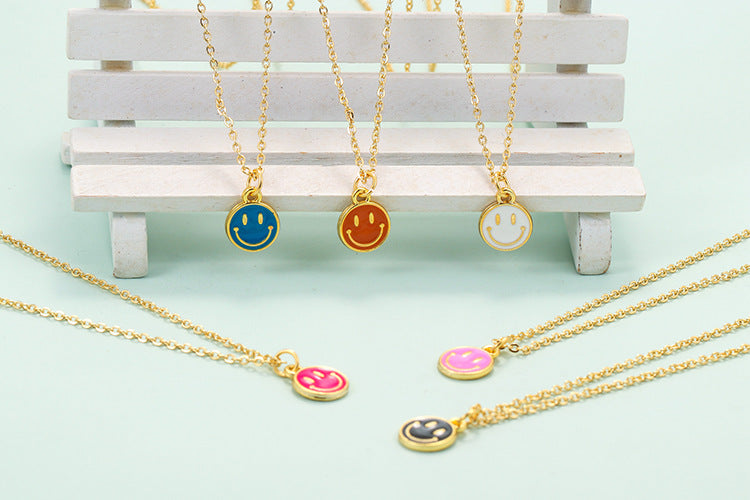 Wholesale Jewelry Smile Face Oil Drop Pendant Copper Necklace Gooddiy