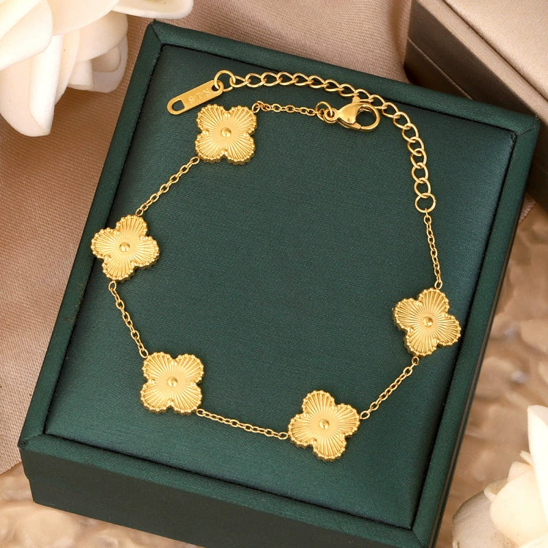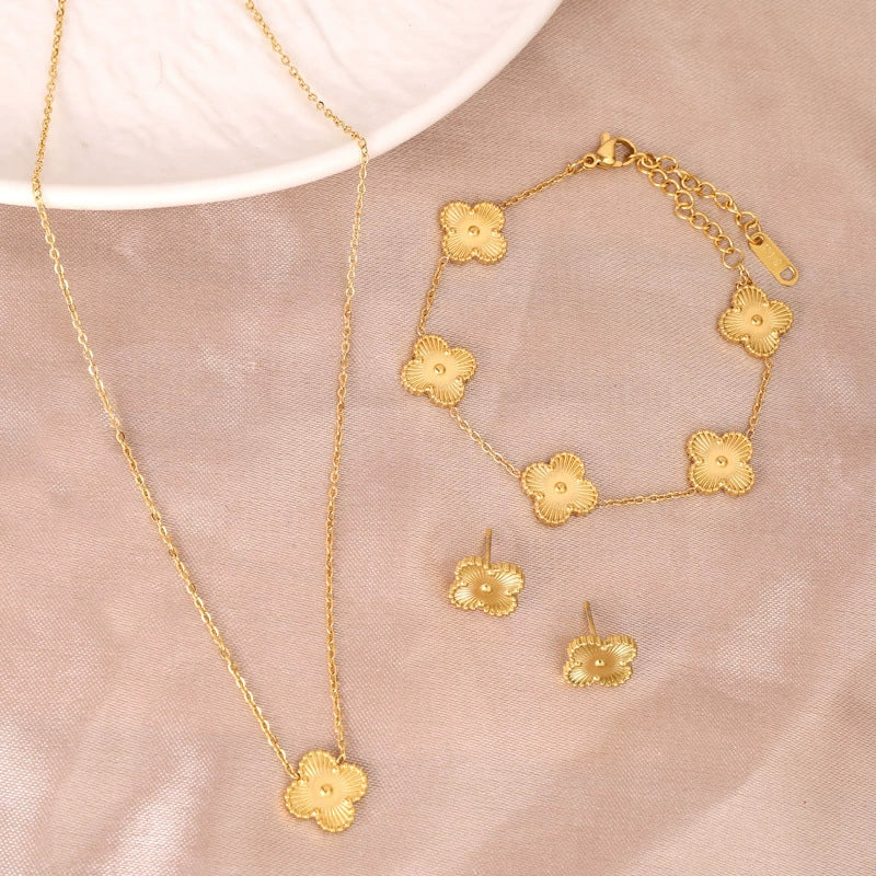 Wholesale Jewelry Titanium Steel Geometric Fourleaf Clover Electroplating Light Luxury Nonfading Necklace Bracelet Earrings Set