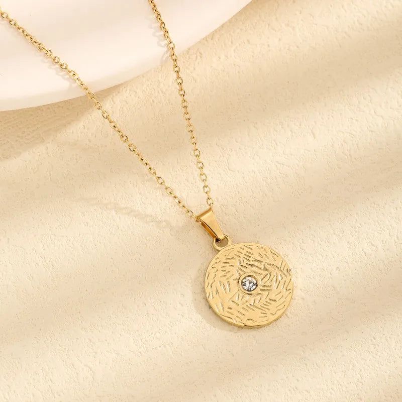 Wholesale Jewelry Vintage Style Simple Style Round 304 Stainless Steel Pendant Necklace