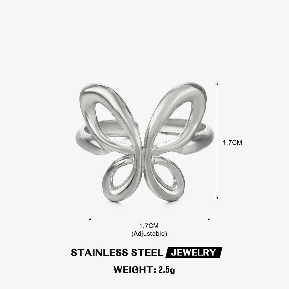 Wholesale Ladies Stainless Steel 18K Gold Plated Animal Butterfly Ring With Exaggerated Open Design