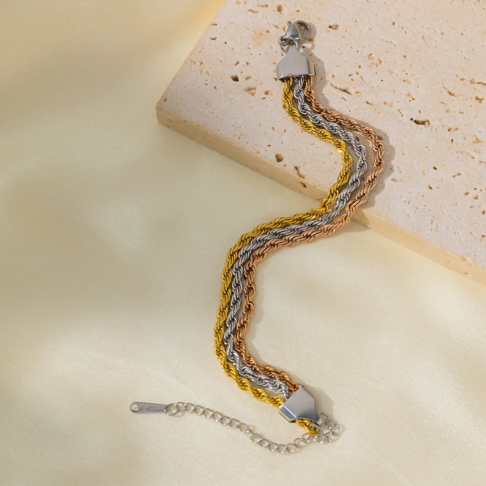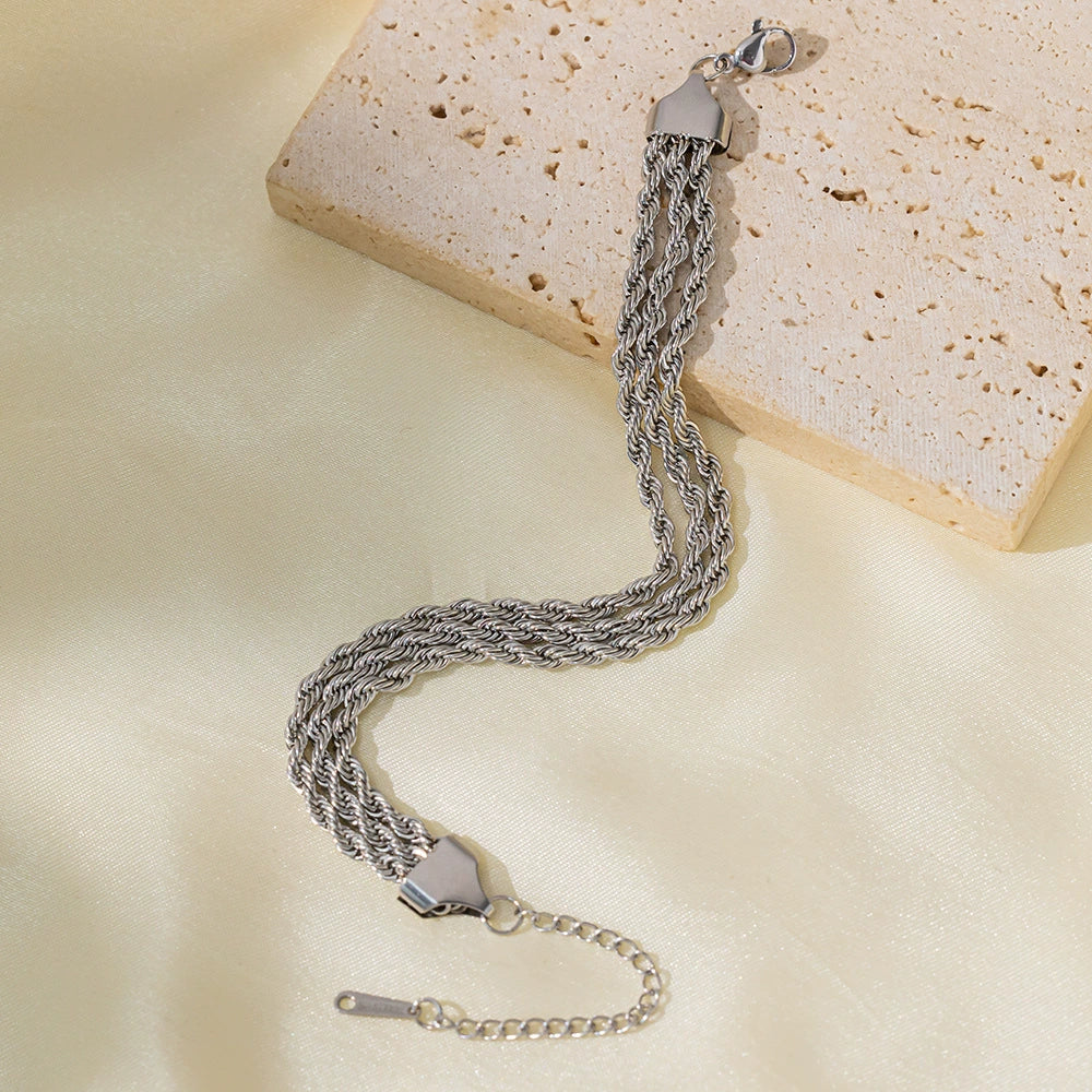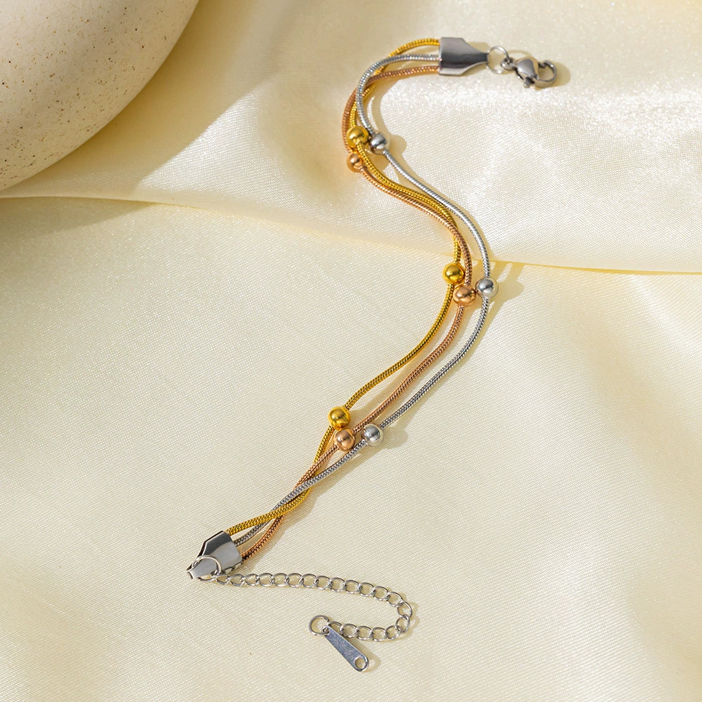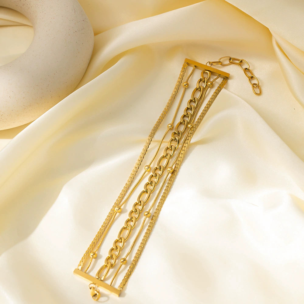 Wholesale Multi Layer Women's Retro Simple Fashion Metal Bracelet Set Titanium Steel Geometric Electroplated