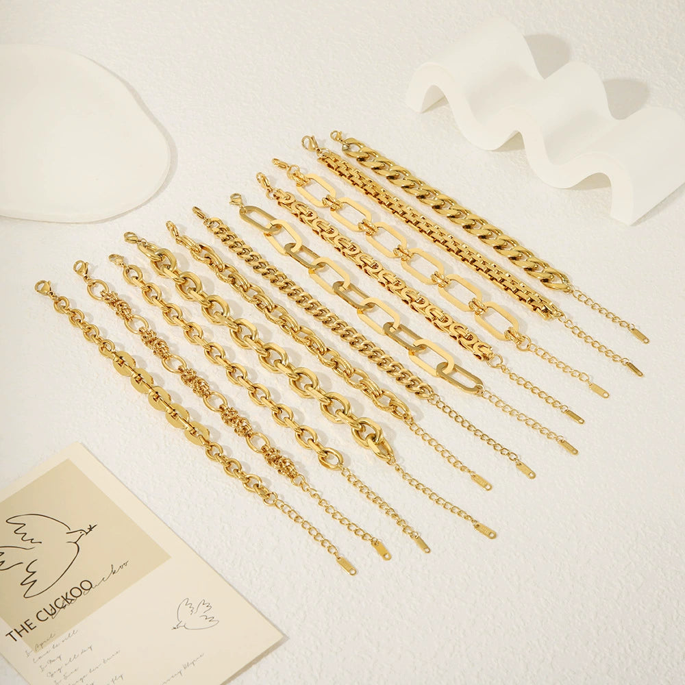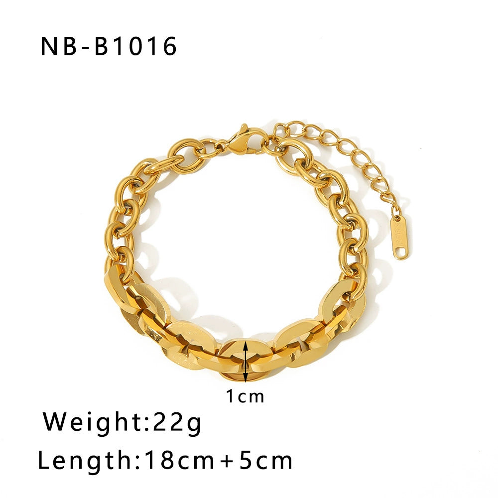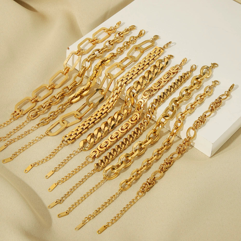 Wholesale Multistyle Thick Chain Personality Hip Hop Punk Style Stainless Steel Handmade Woven Geometric Bracelet With 24K Real Gold Electroplating