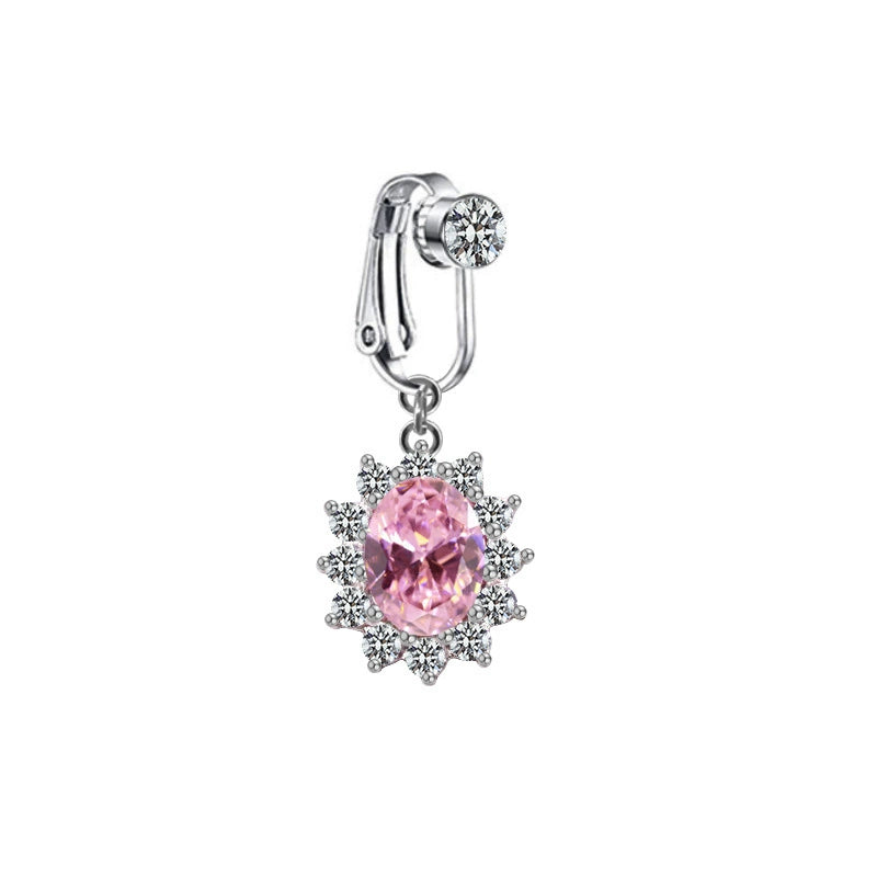 Wholesale Navel Clip Ear Clip Jewelry Stainless Steel Heart Shape Diamond Alloy Inlaid Artificial Gem Semiprecious Stone Unisex