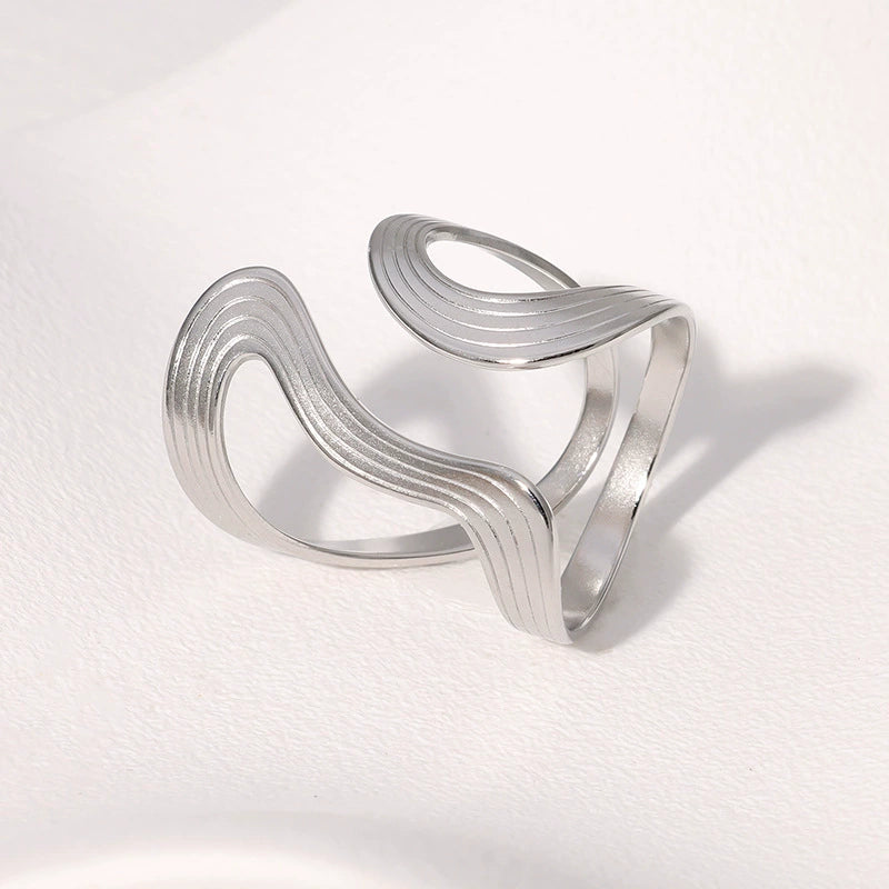 Wholesale Retro Geometric Exaggerated Stainless Steel Ring With Simple Line Irregular Niche Design And Electroplating For Women