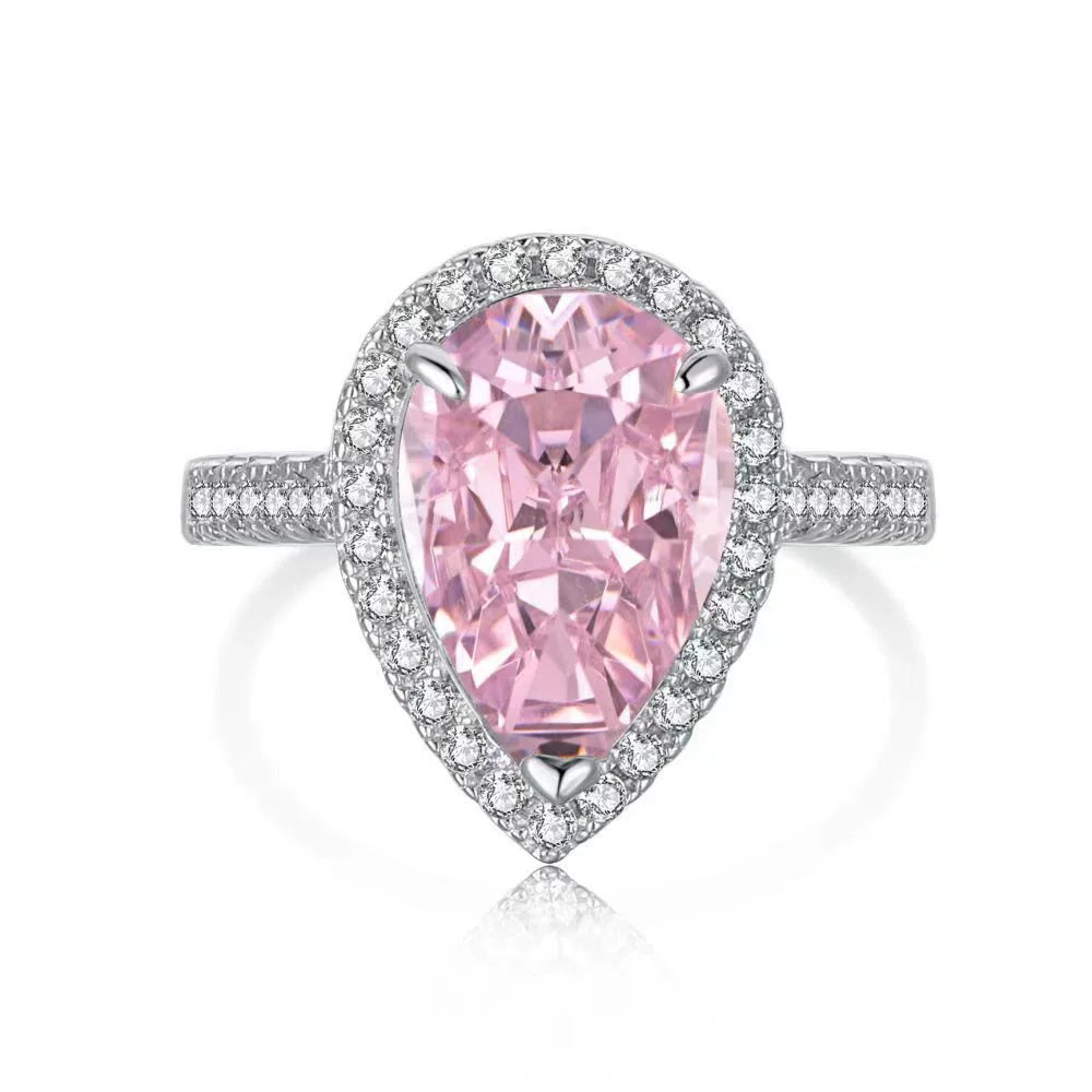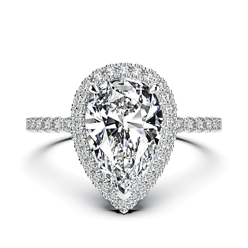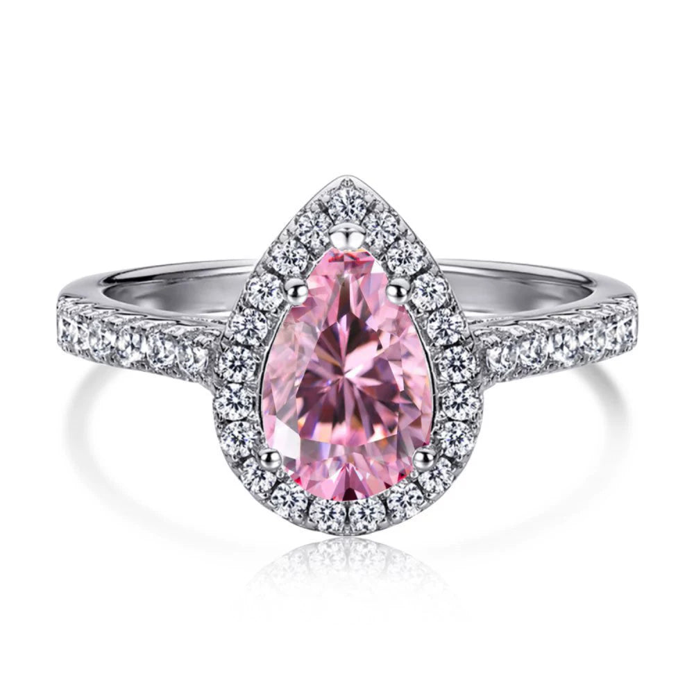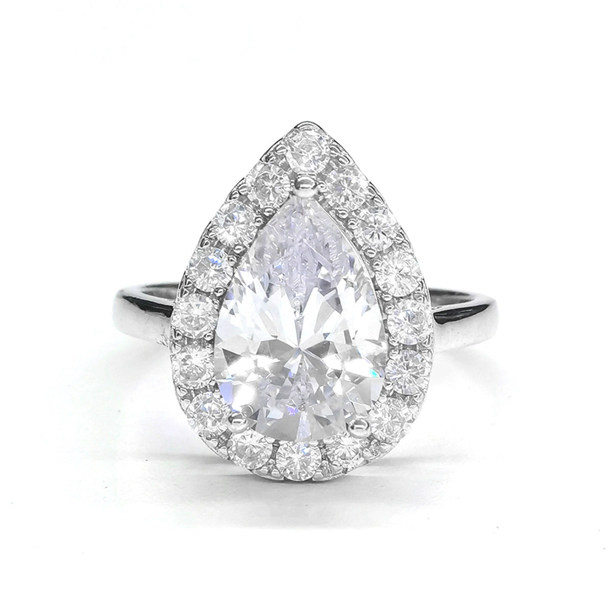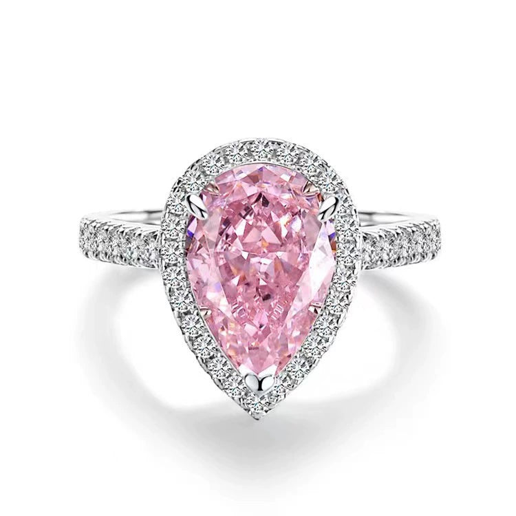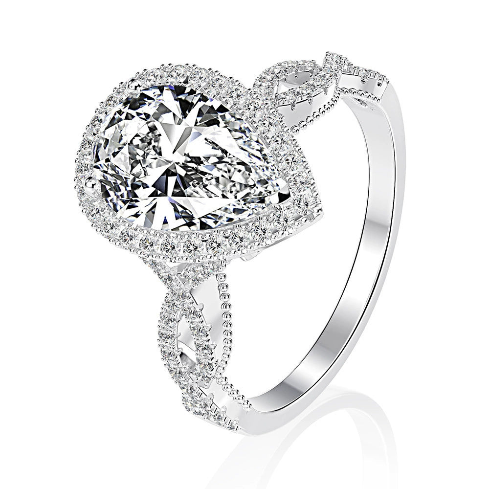 Wholesale S925 Sterling Silver Drop Shaped High Carbon Diamond Ring With Electroplating Process For Women