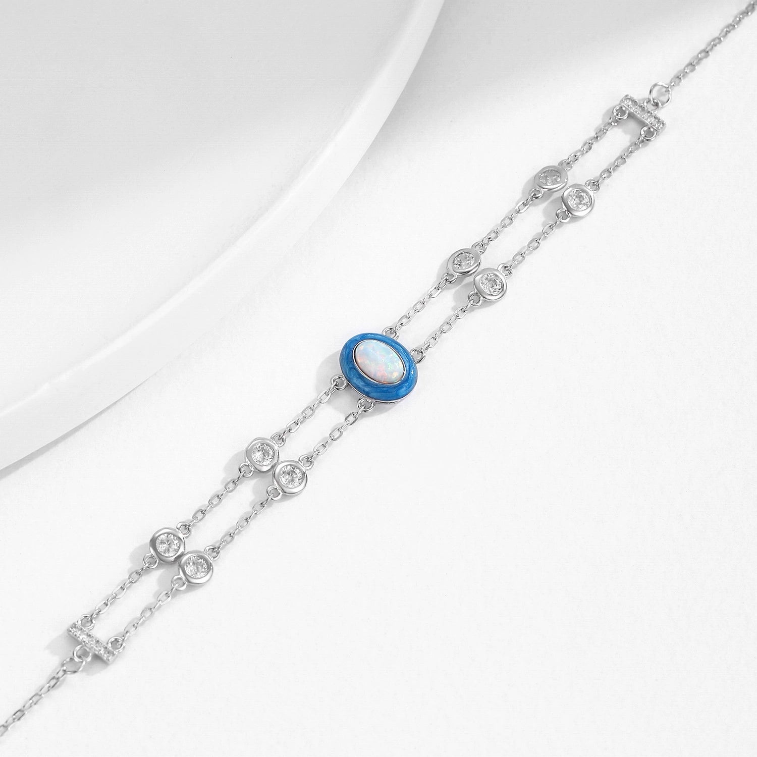 Wholesale S925 Sterling Silver Geometric Gradient Enamel Opal Multilayer Chain Diamond Bracelet For Women