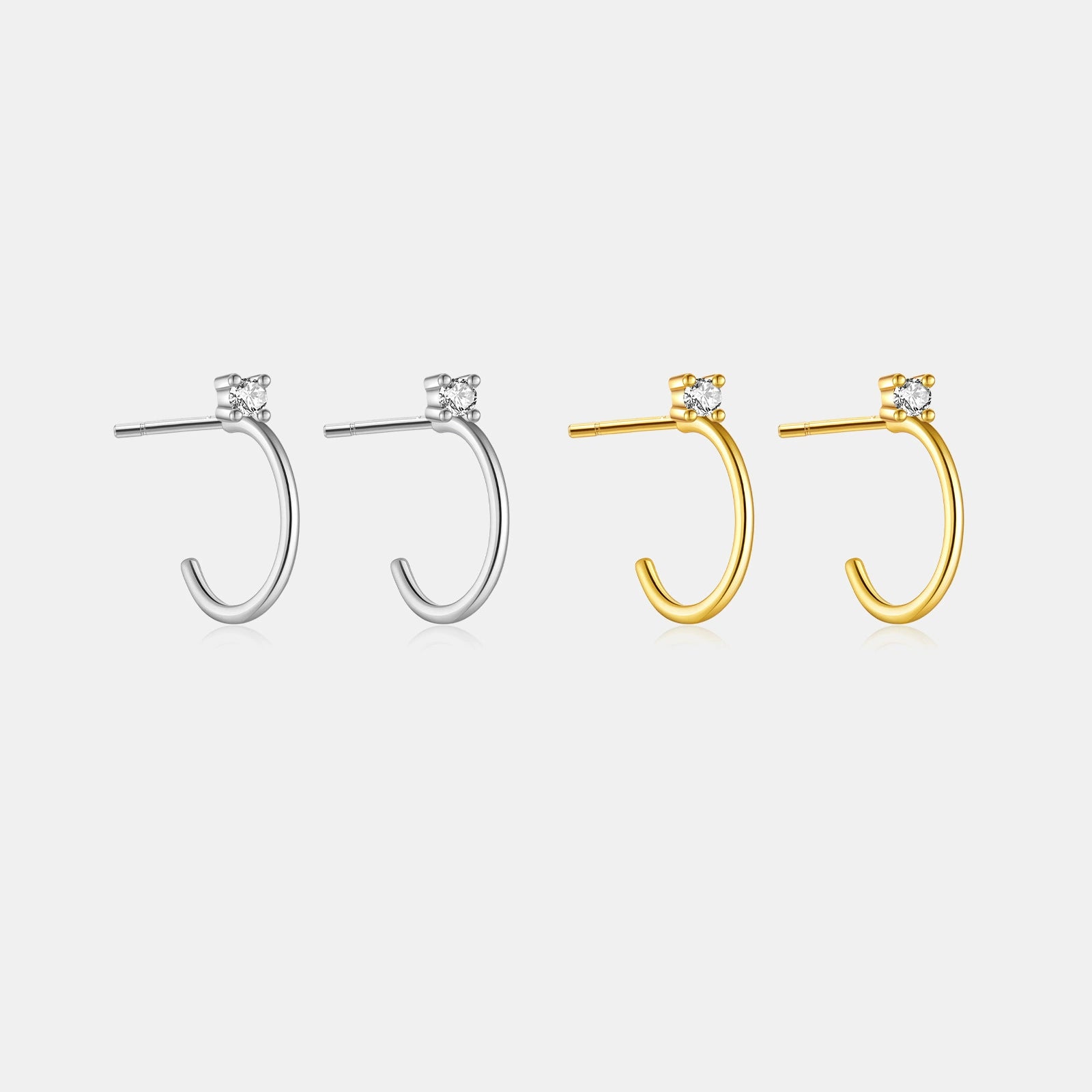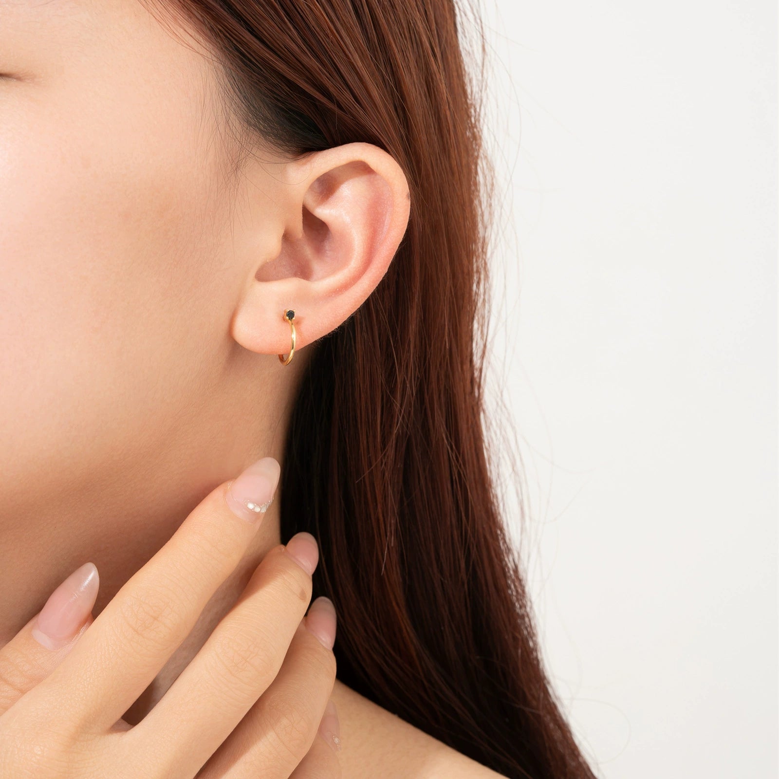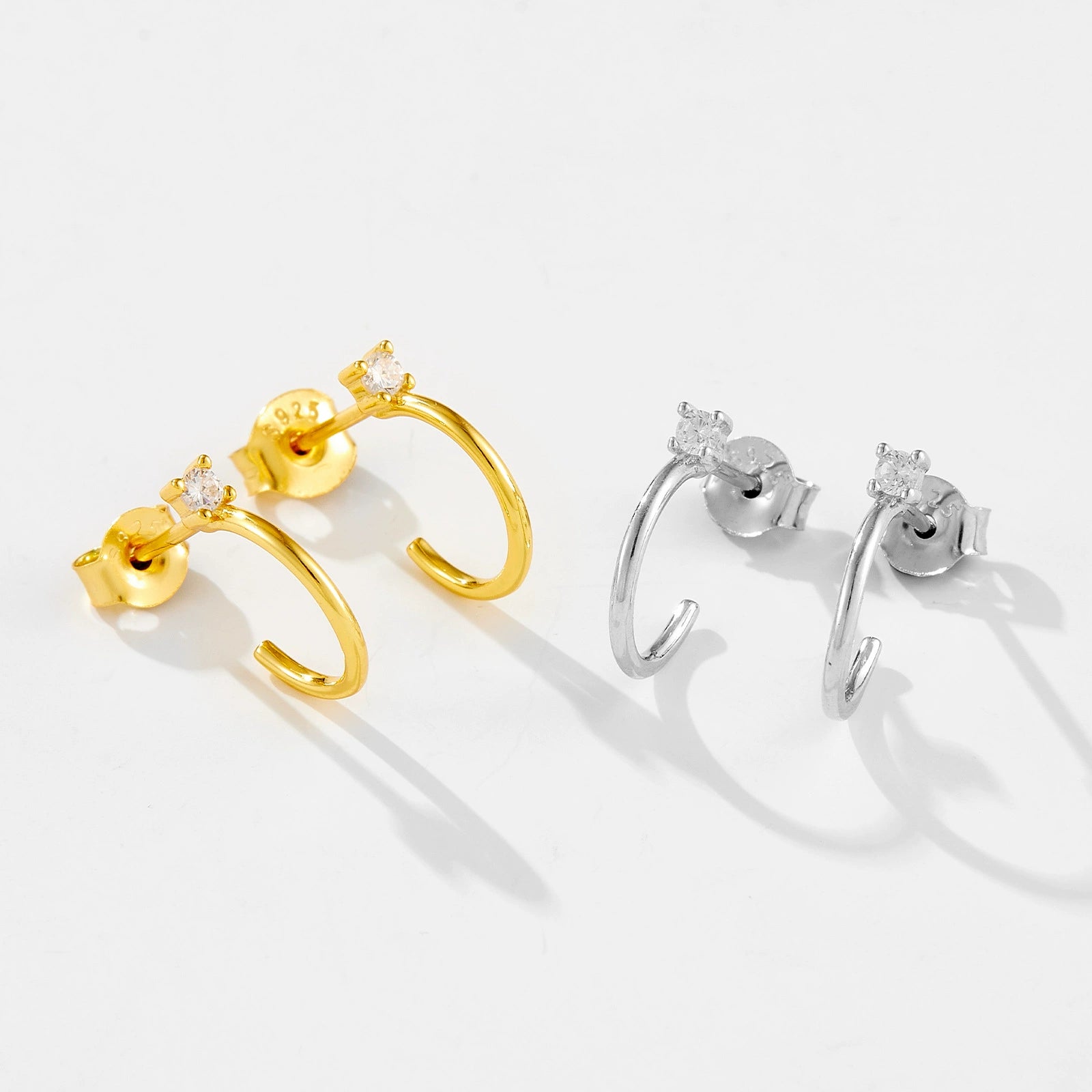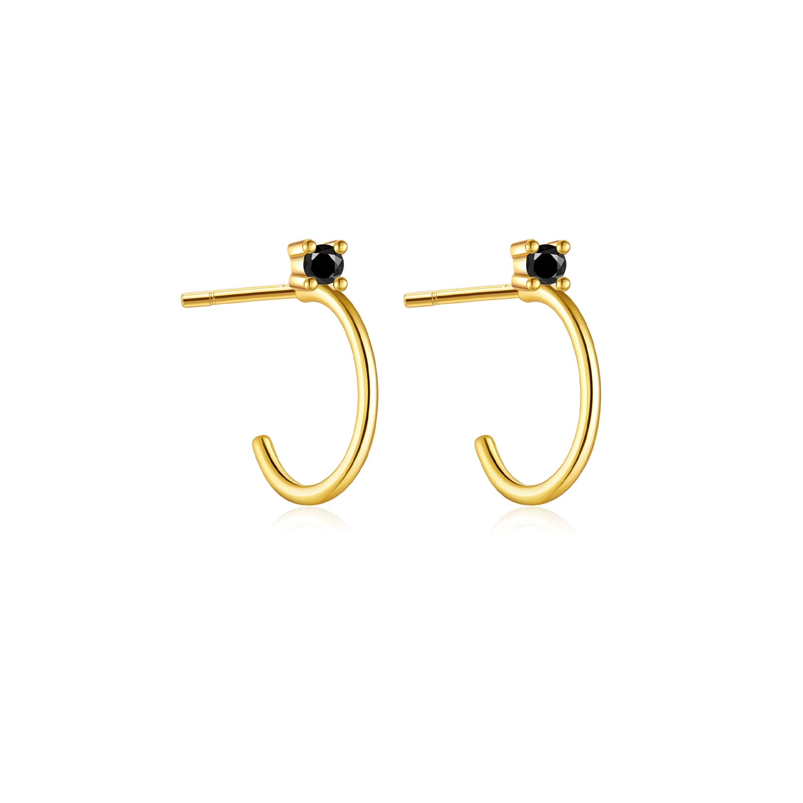 Wholesale S925 Sterling Silver Thin Wire Earrings With White And Black Stones Simple All Match Cold Wind Earrings 18K Gold Electroplated Geometric Design