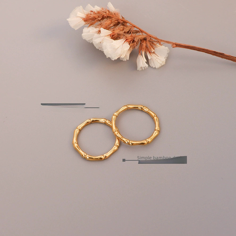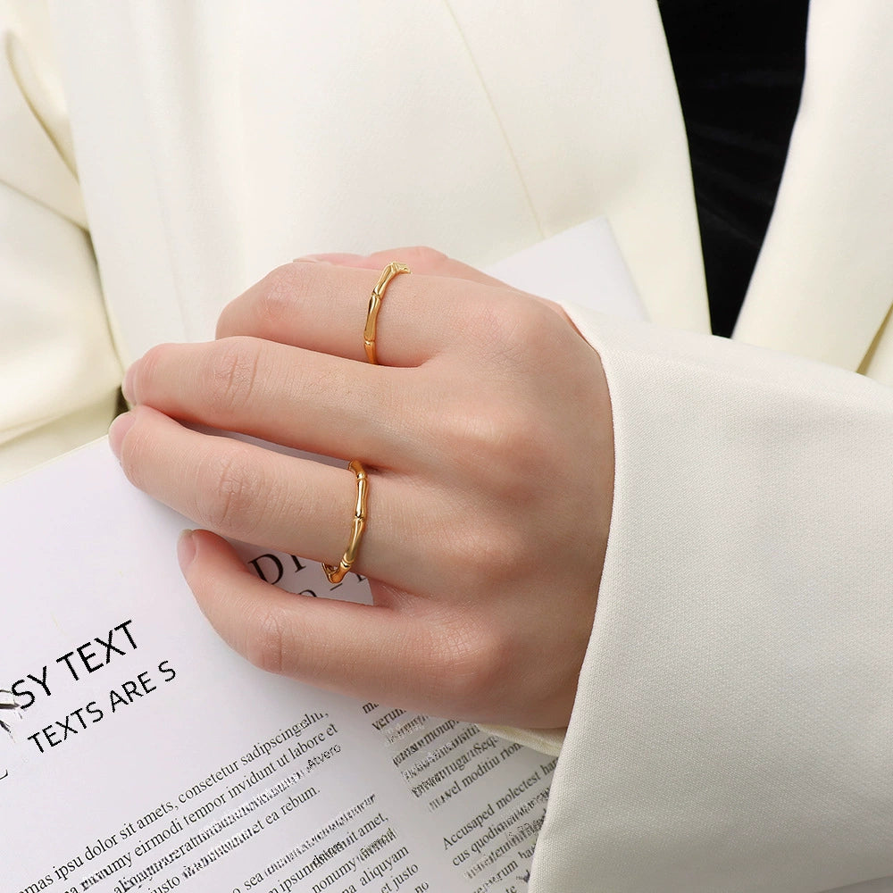 Wholesale Simple Allmatch Bamboo Women's Ring In Titanium Steel With Geometric Pattern 18K Gold Plated