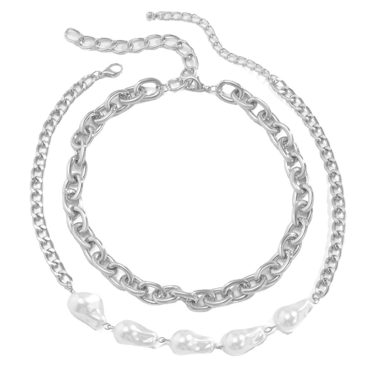 Wholesale Simple Multilayer Metal Chain Imitation Baroque Pearl Alloy Pendant Necklace With Geometric Pattern And Electroplating For Women