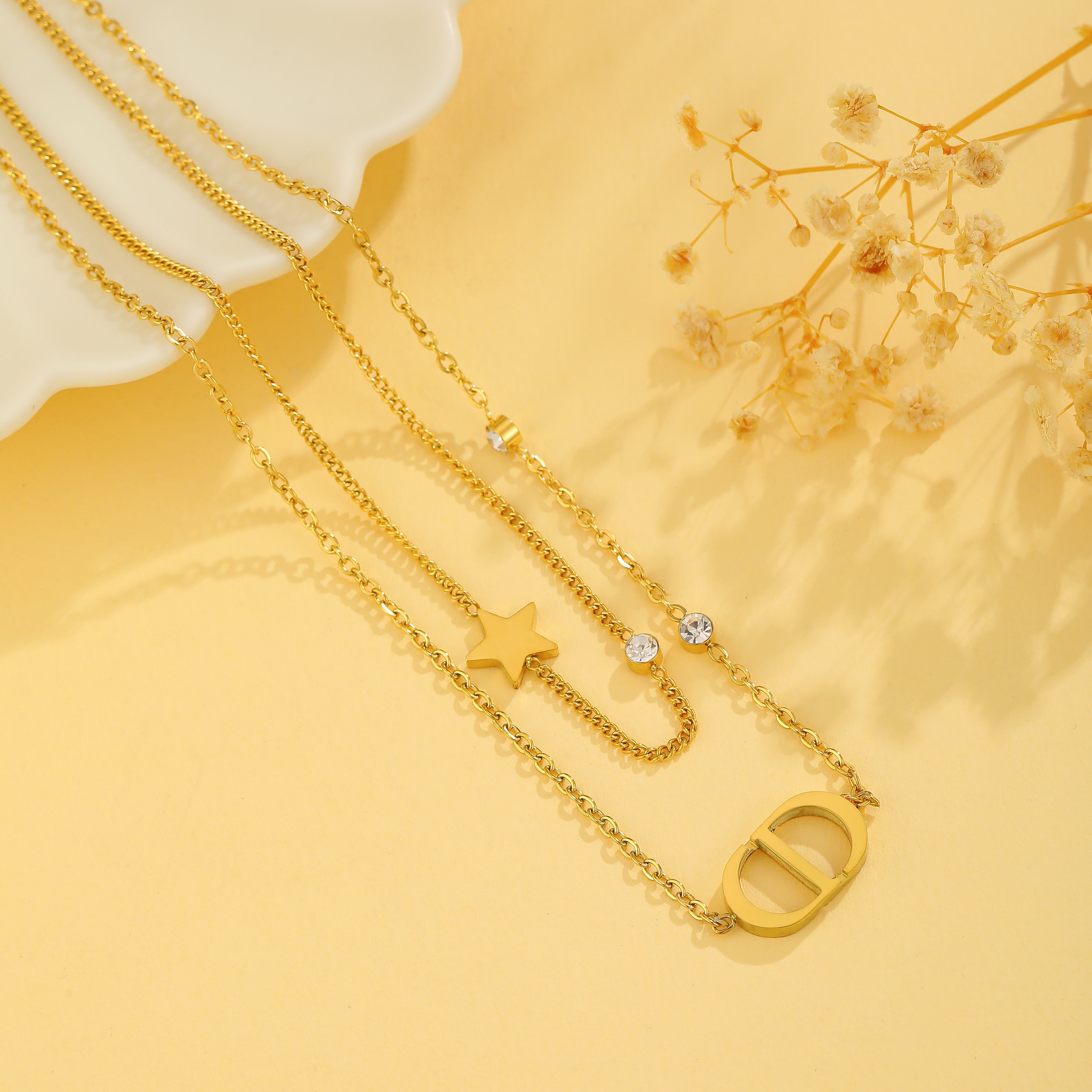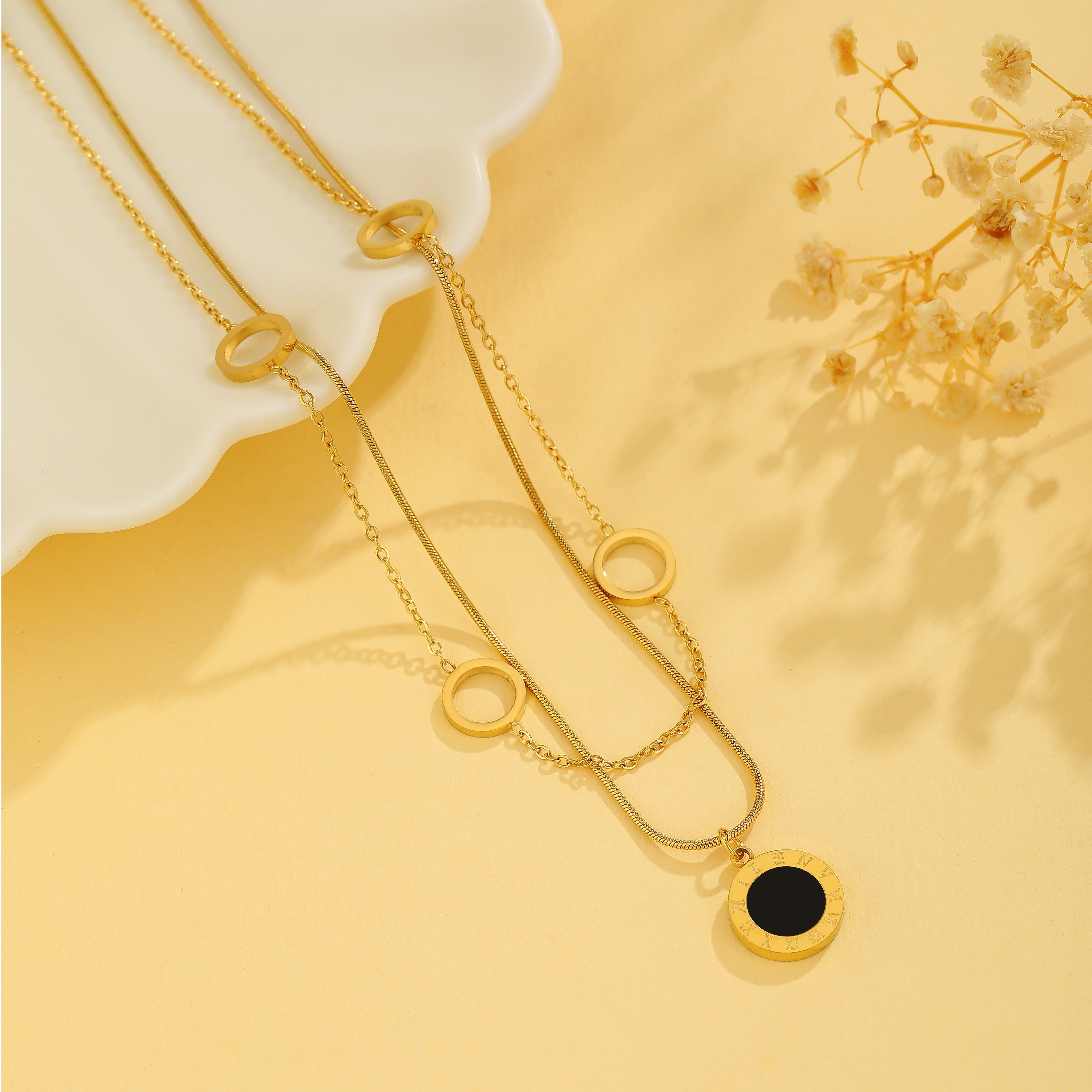 Wholesale Simple Style Four Leaf Clover Roman Numeral Titanium Steel Plating 18k Gold Plated Layered Necklaces