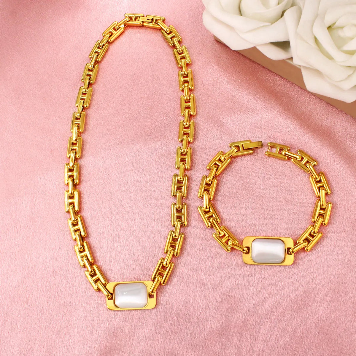 Wholesale Streetwear Solid Color Stainless Steel Titanium Steel Plating Inlay Natural Stone Bracelets Necklace