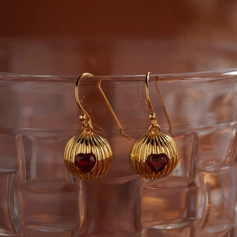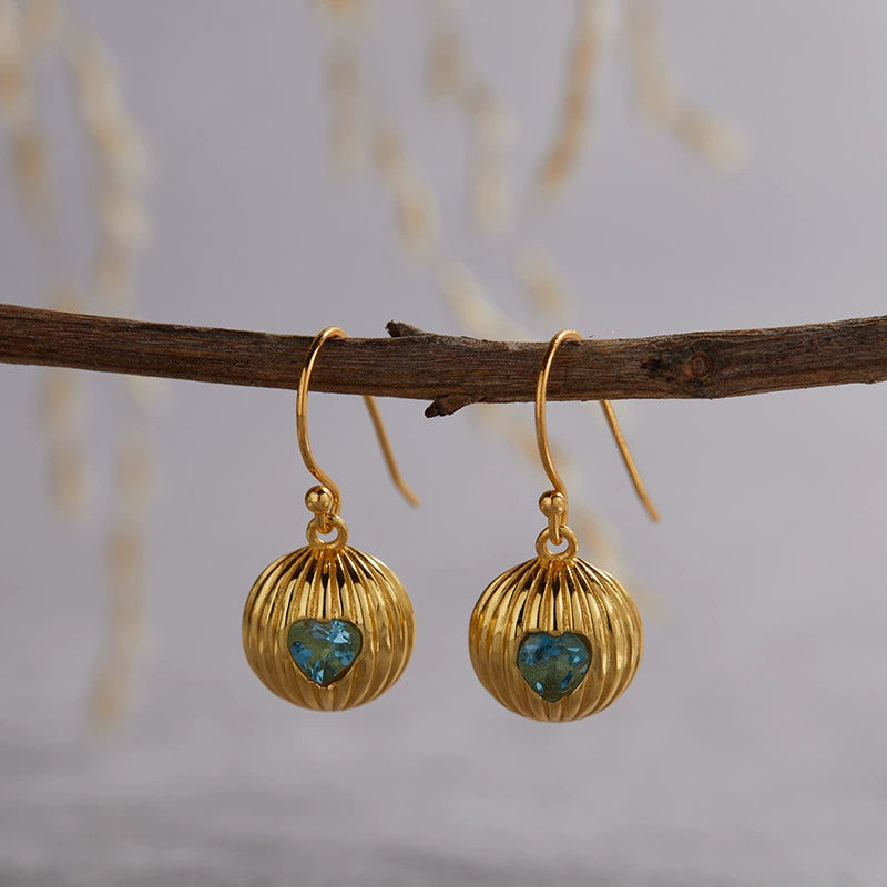 Wholesale Stud Earrings 925 Sterling Silver Natural Heartshaped Gemstone Retro Geometric Style