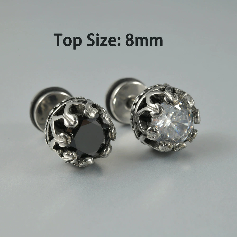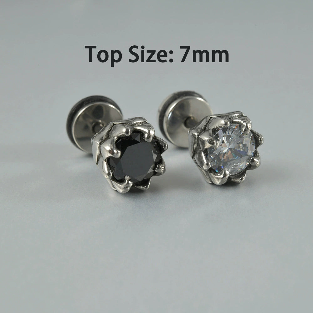 Wholesale Stud Earrings Stainless Steel Zircon Clawshaped Geometric Hip Hop Style Electroplated