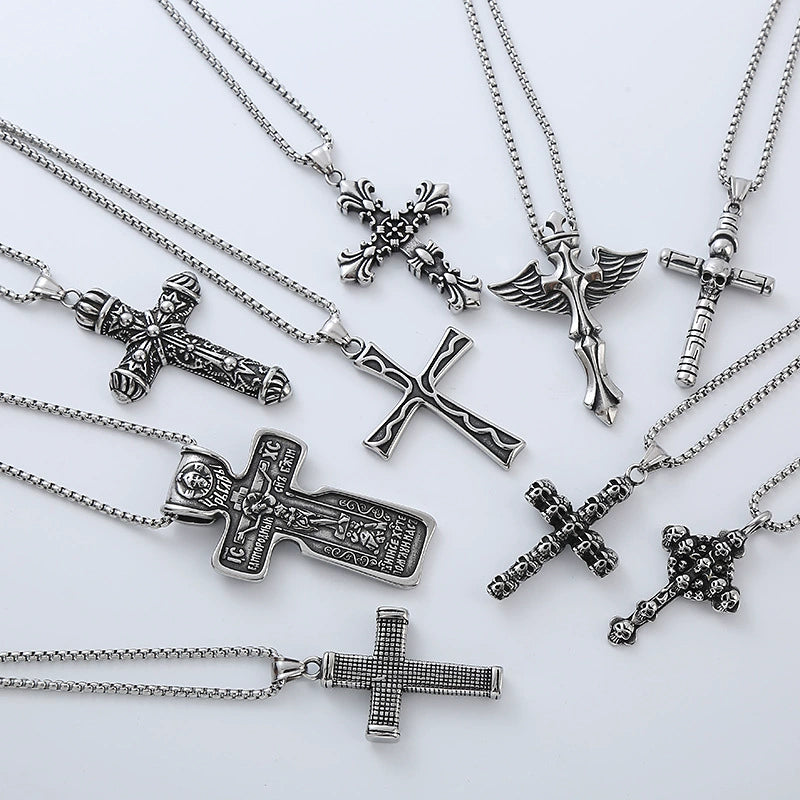 Wholesale Titanium Steel Cross Pendant Necklace Geometric Punk Hiphop Style With Polishing