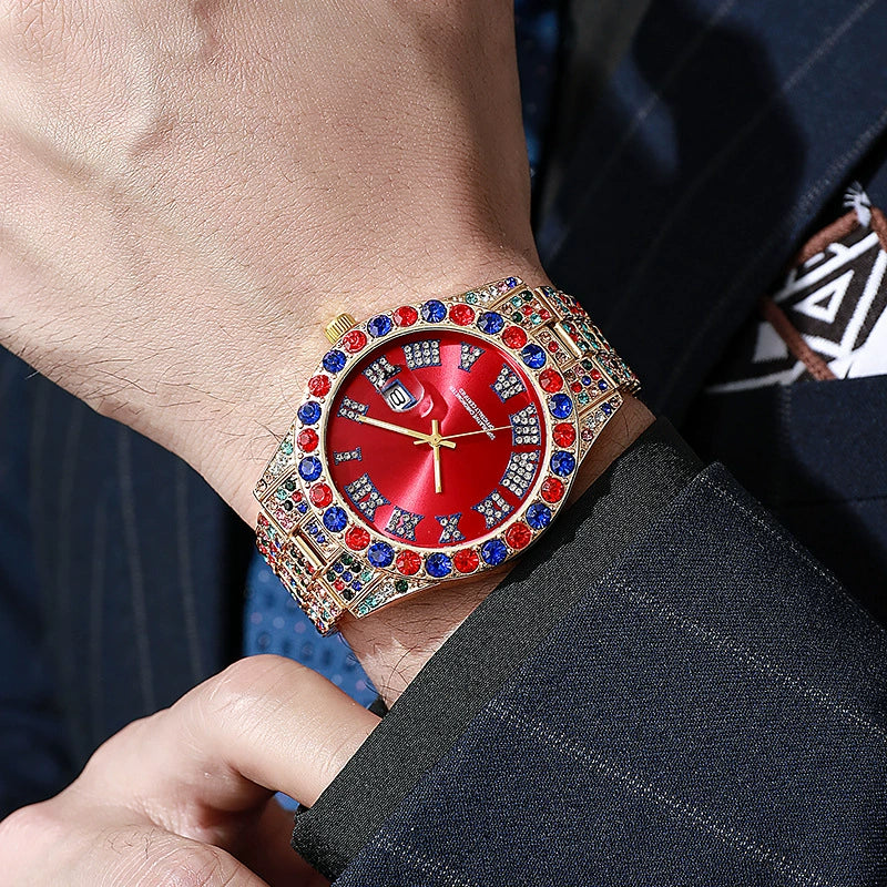 Wholesale Watch Alloy Hiphop Round Quartz Watch With Onion Crown And Single Folding Buckle