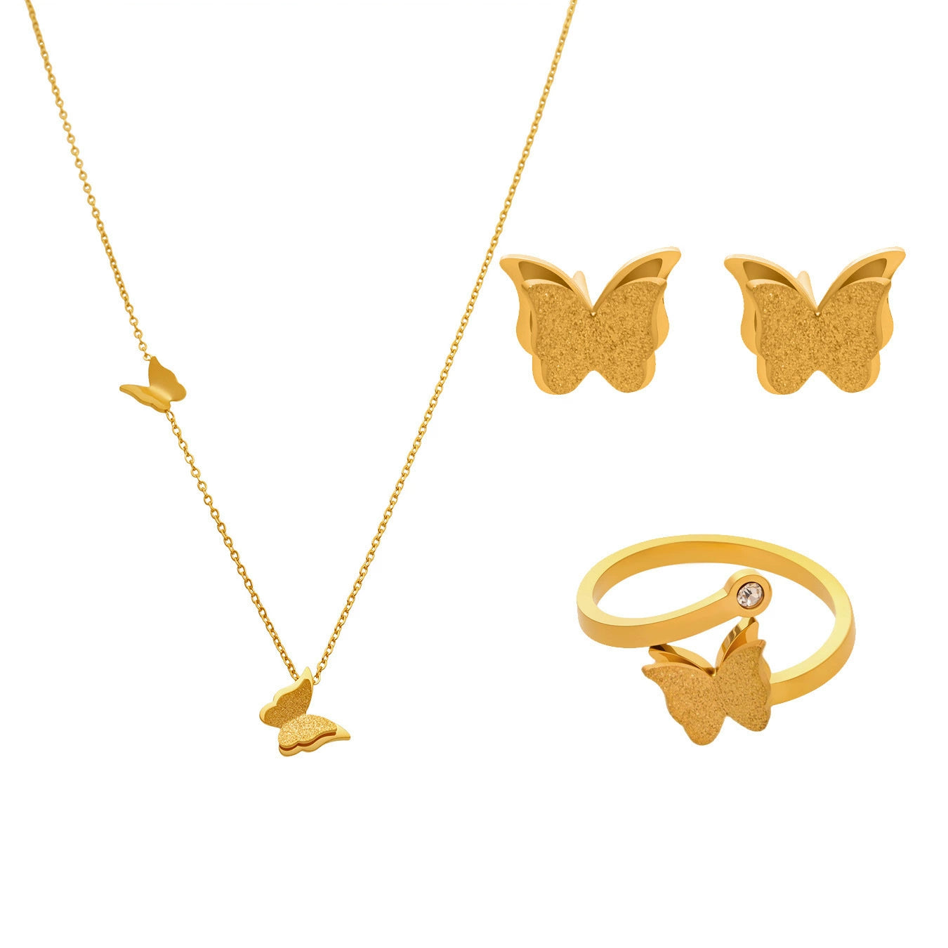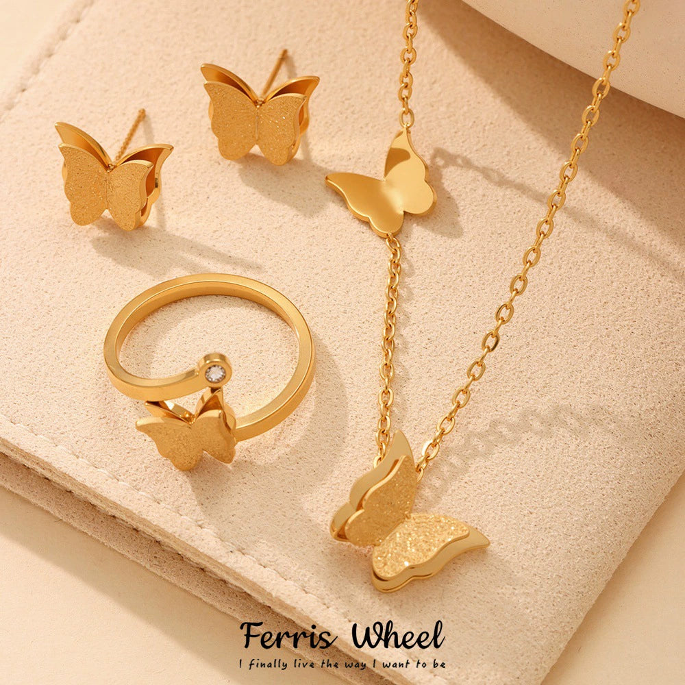 Wholesale Women's Fashion Frosted Butterfly Ferris Wheel Jewelry Set Electroplated Stainless Steel And Titanium Steel