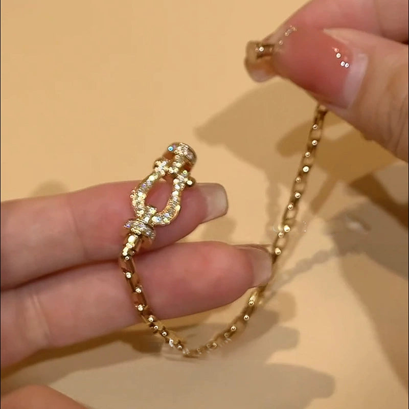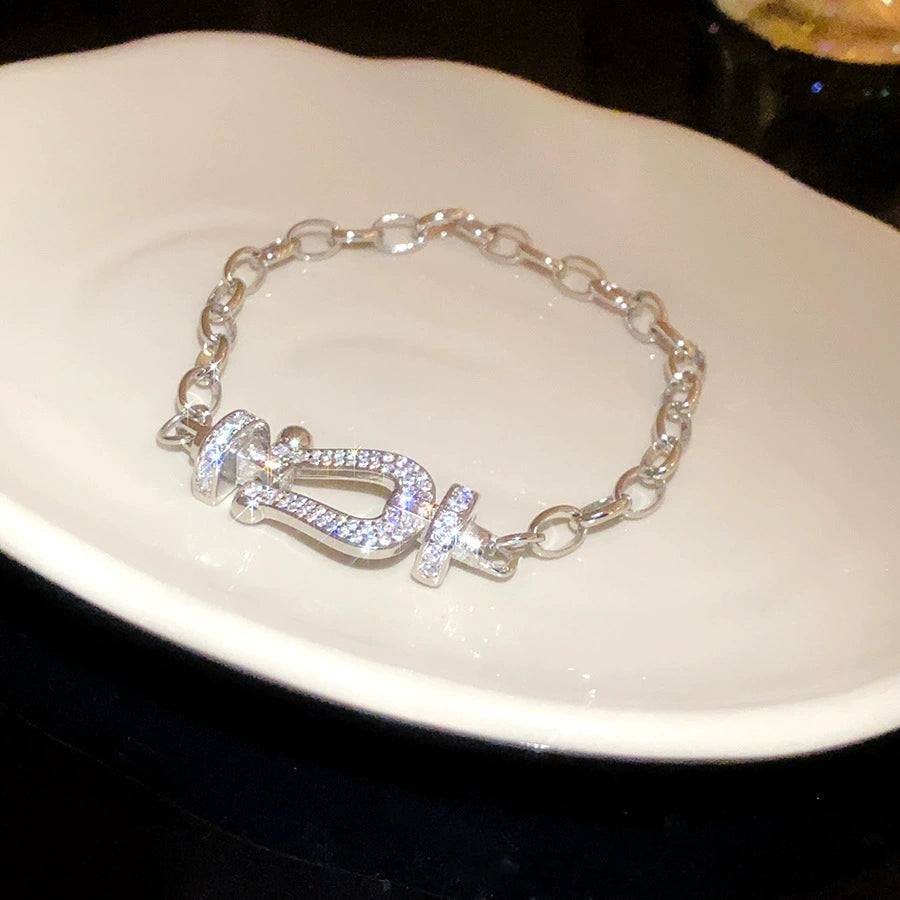 Wholesale Women's Geometric Zirconia Copper Plastic Horseshoe Buckle Chain Bracelet Light Luxury Cool Style