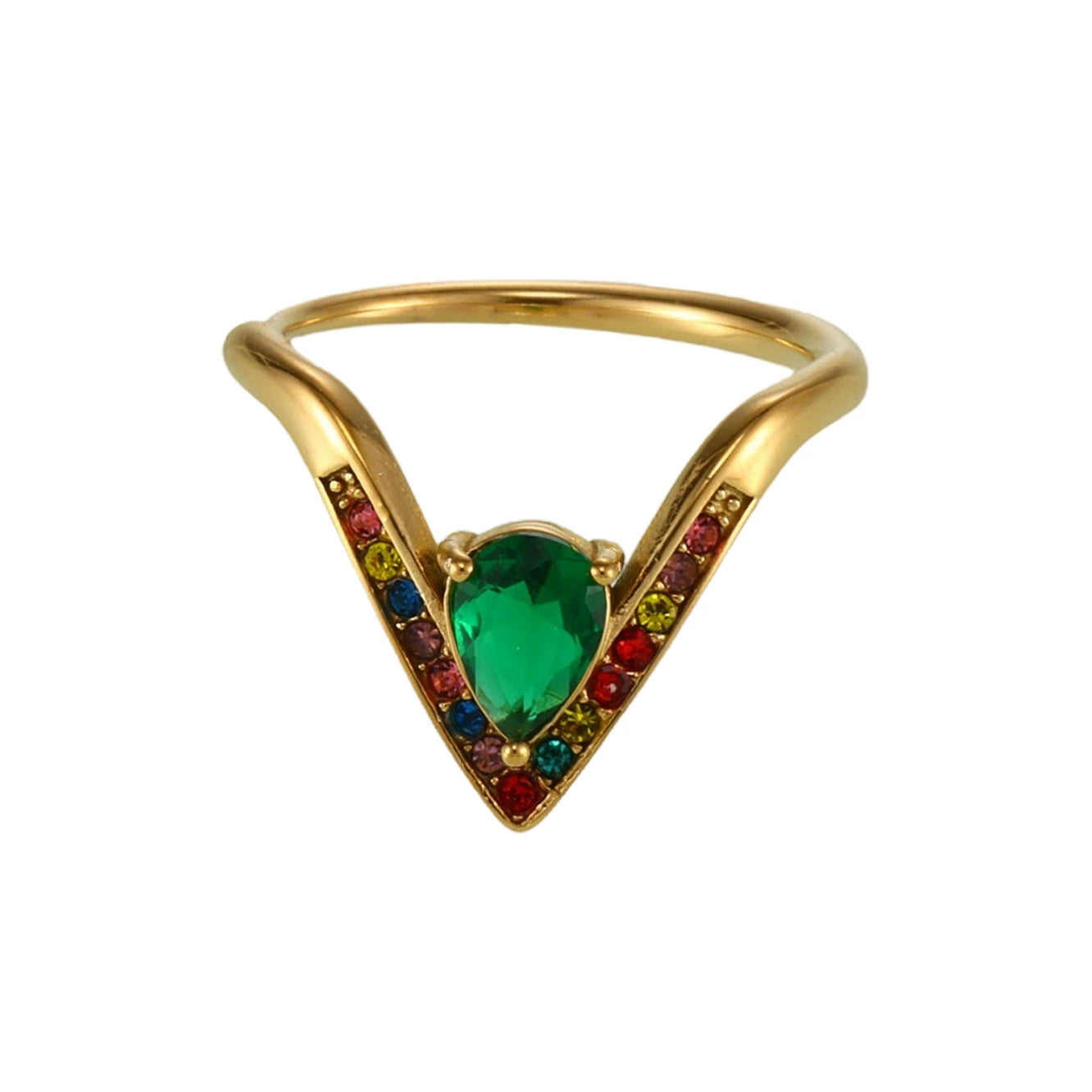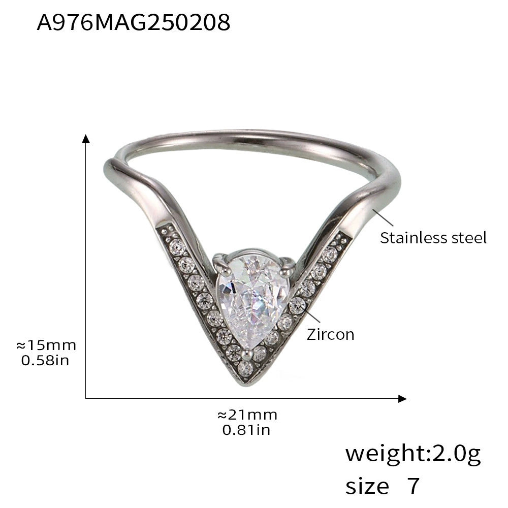 Wholesale Women's Light Luxury Geometric Titanium Steel Electroplated Ferris Wheel Vshaped Adjustable Ring