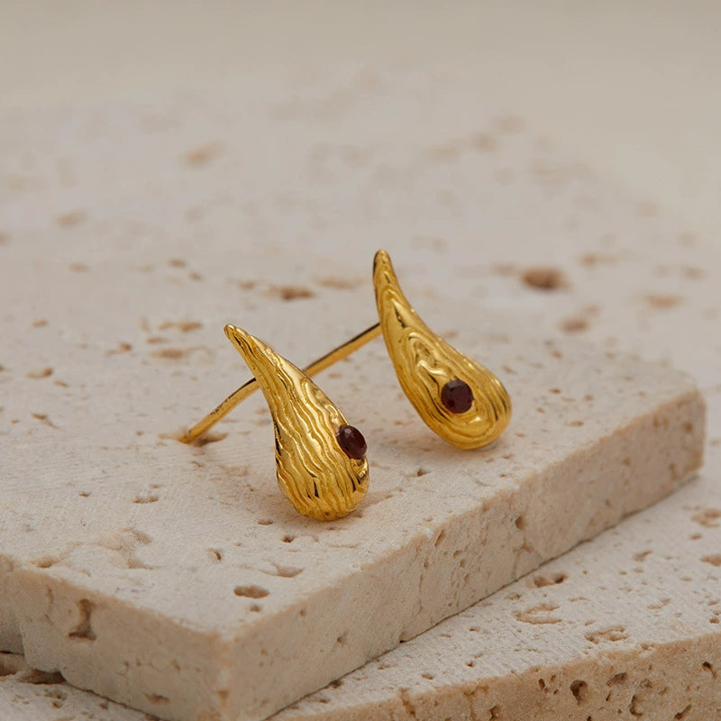 Wholesale Women's S925 Sterling Silver Geometric Natural Garnet Pearl Colored Gemstone Water Drop Earrings Set With Gems