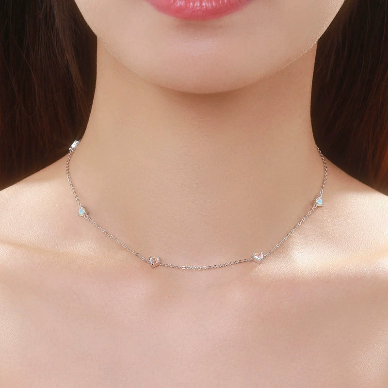 Wholesale Women's S925 Sterling Silver Heartshaped Colorful Zircon Inlaid Clavicle Chain Jewelry