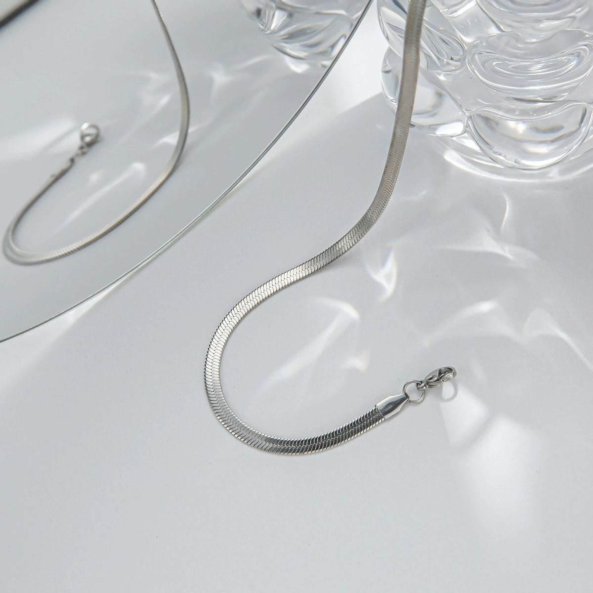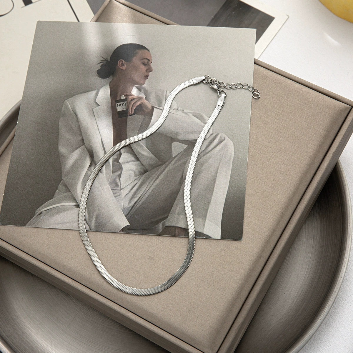 Wholesale Women's Simple Personalized Titanium Steel Snake Bone Chain Geometric Flat Short Clavicle Fashion Necklace