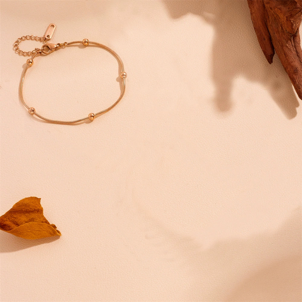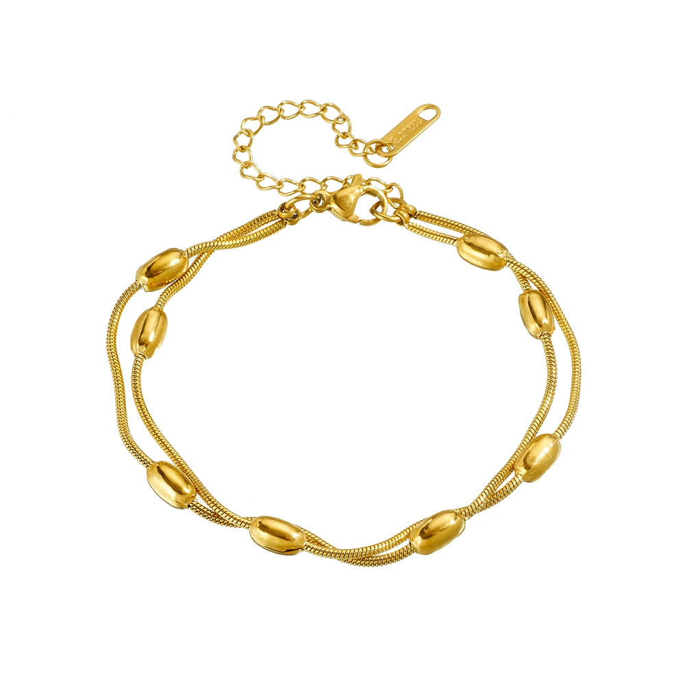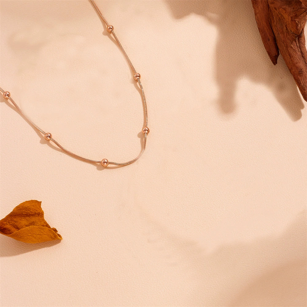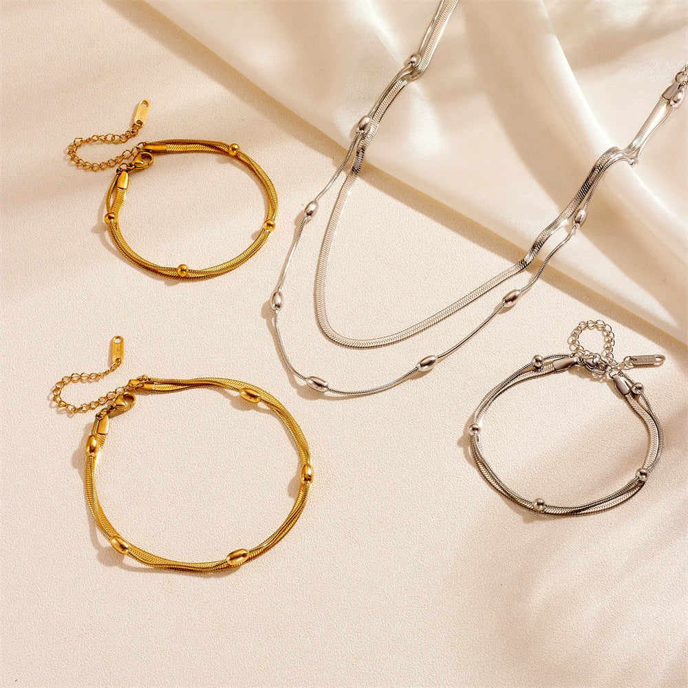 Wholesale Women's Stainless Steel Geometric Simple Doublelayer Colorpreserving Nonfading Ball Bead Anklet