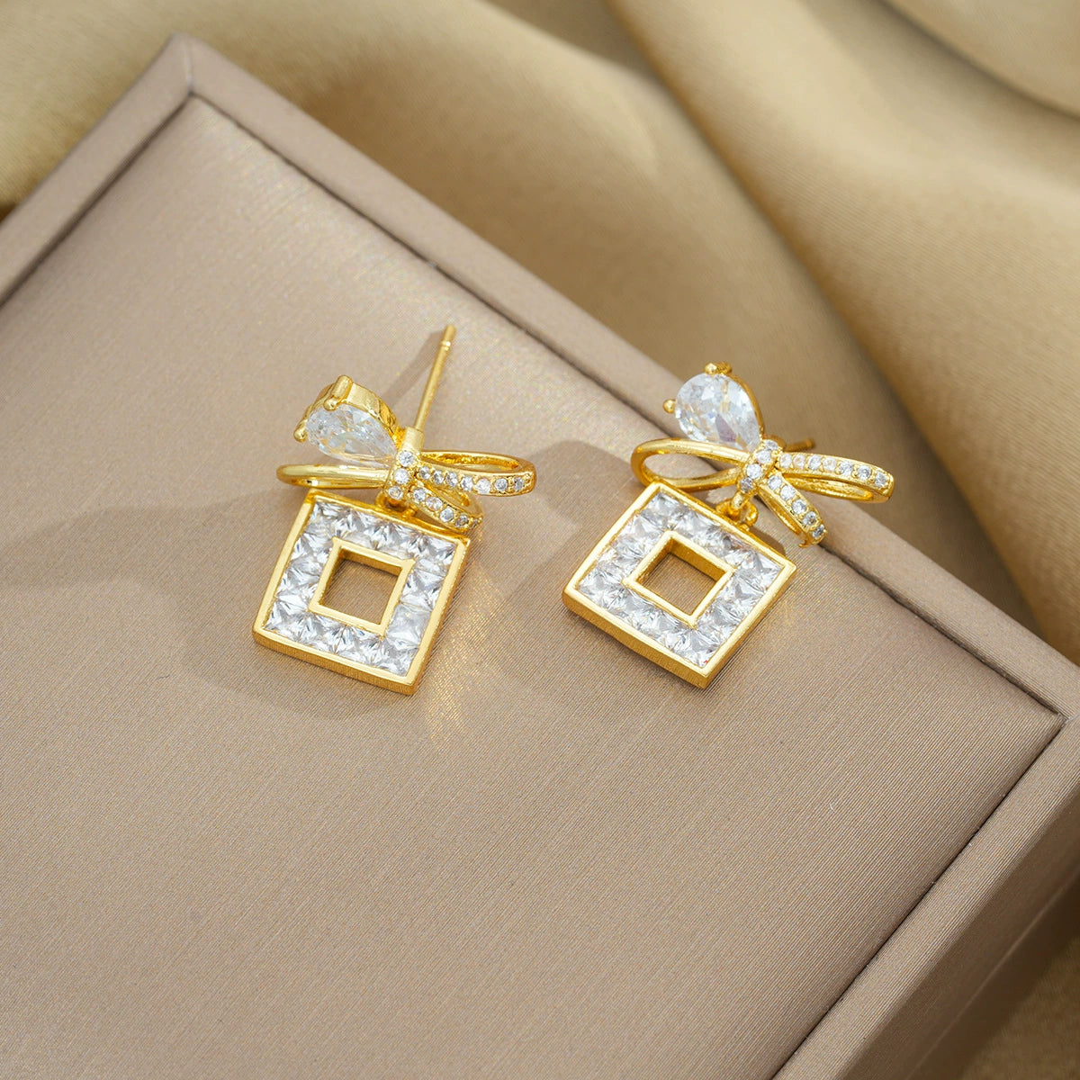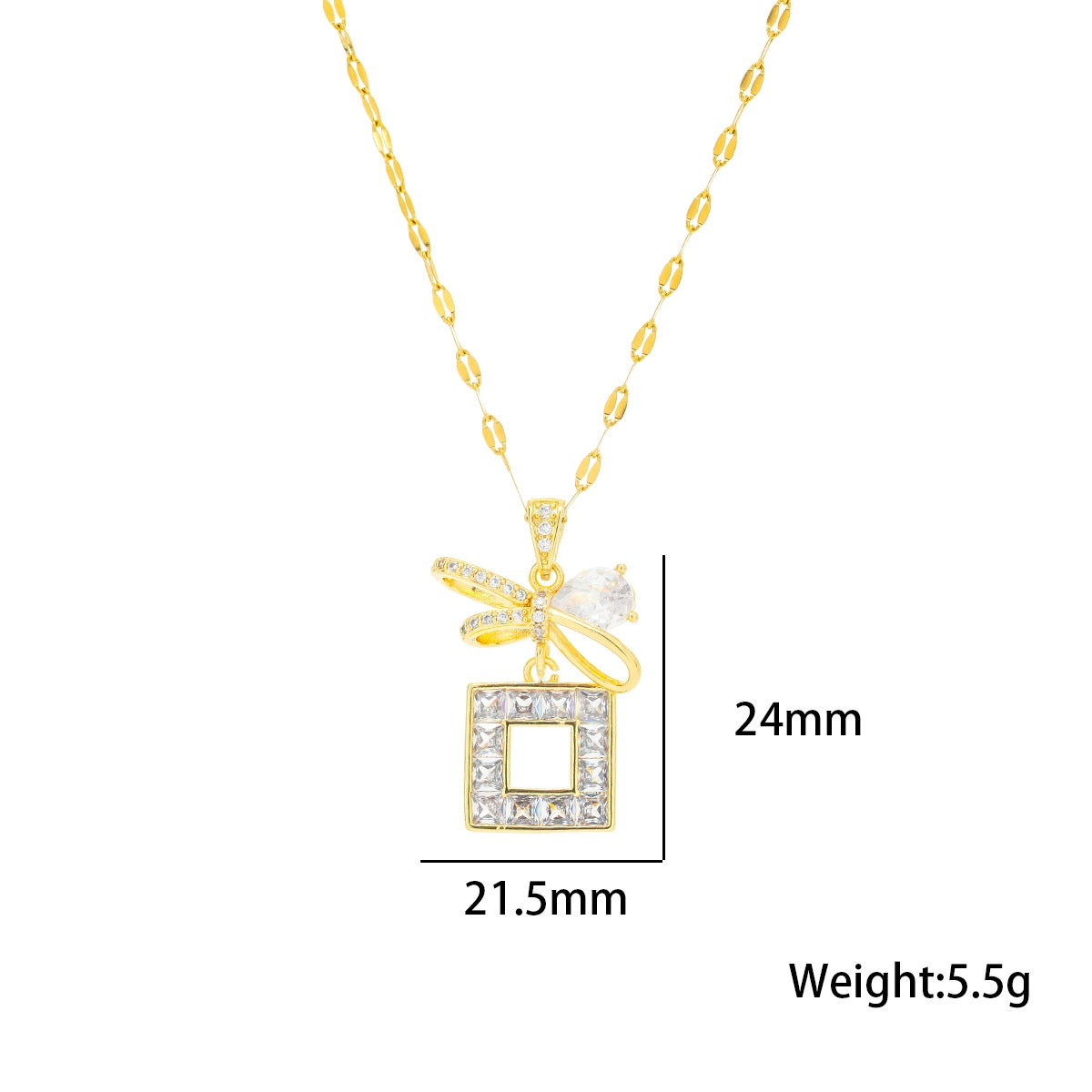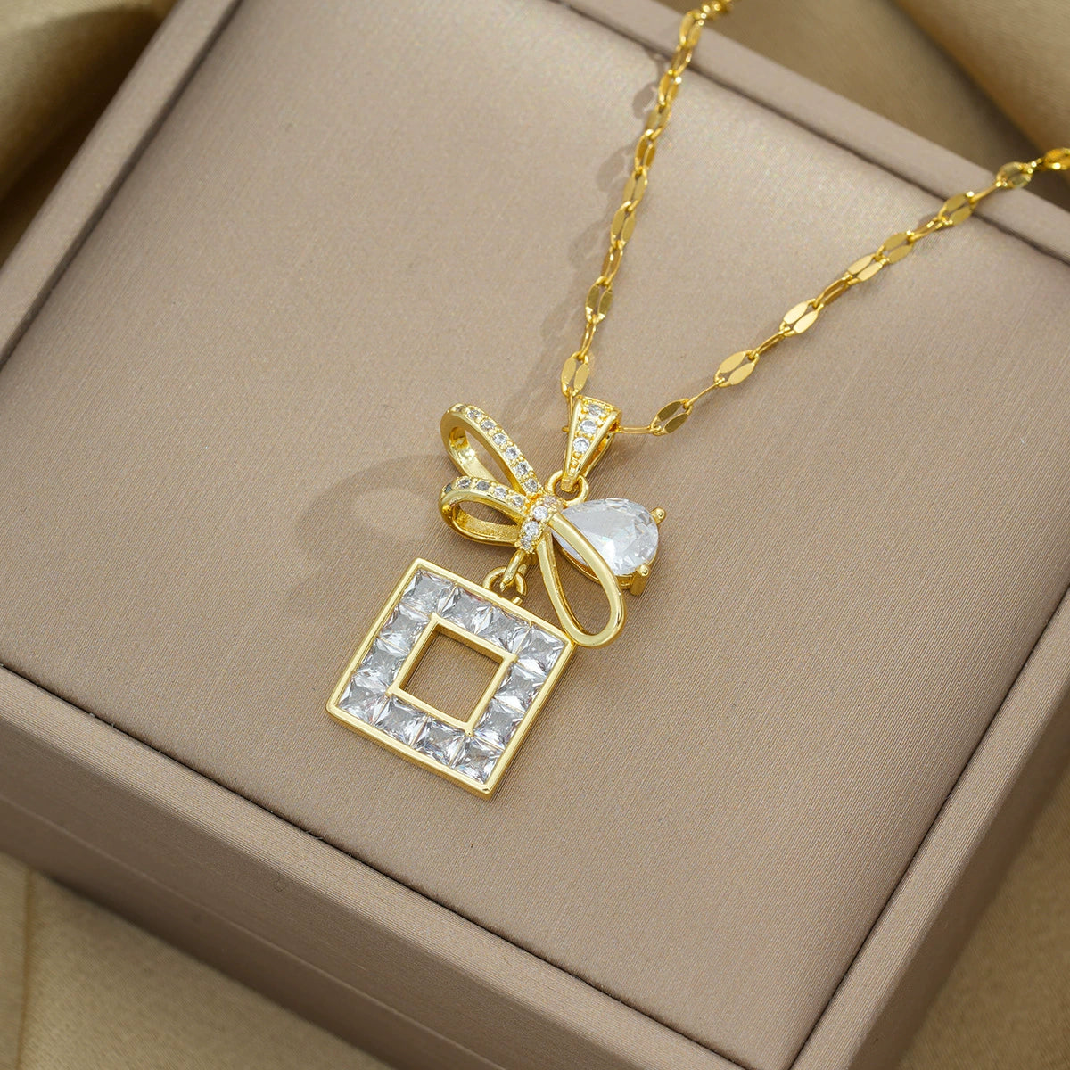 Women Titanium Steel Necklace With Bow Zircon Electroplated In Vacuum Furnace New Style Geometric Design