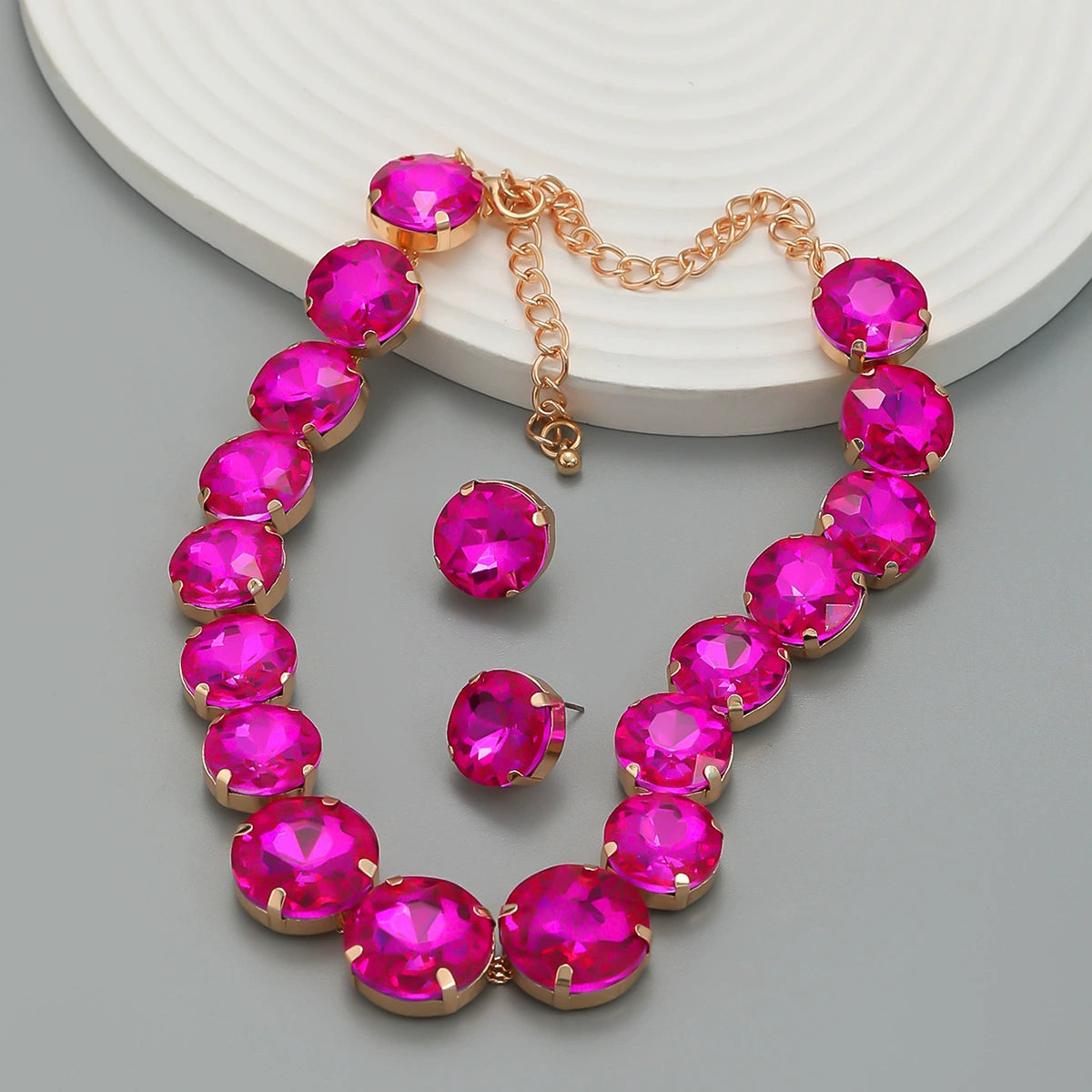 Women's Alloy Geometric Round Glass Diamond Earrings And Necklace Combination Set