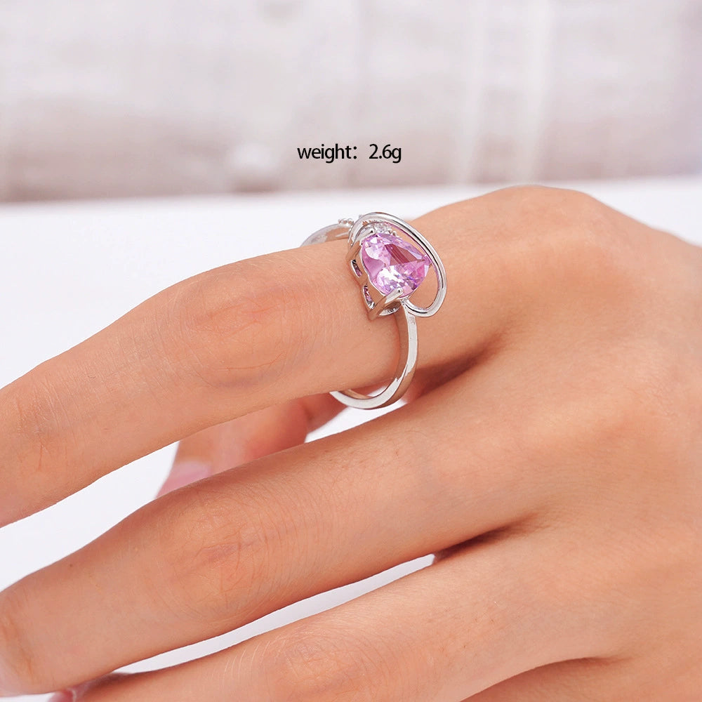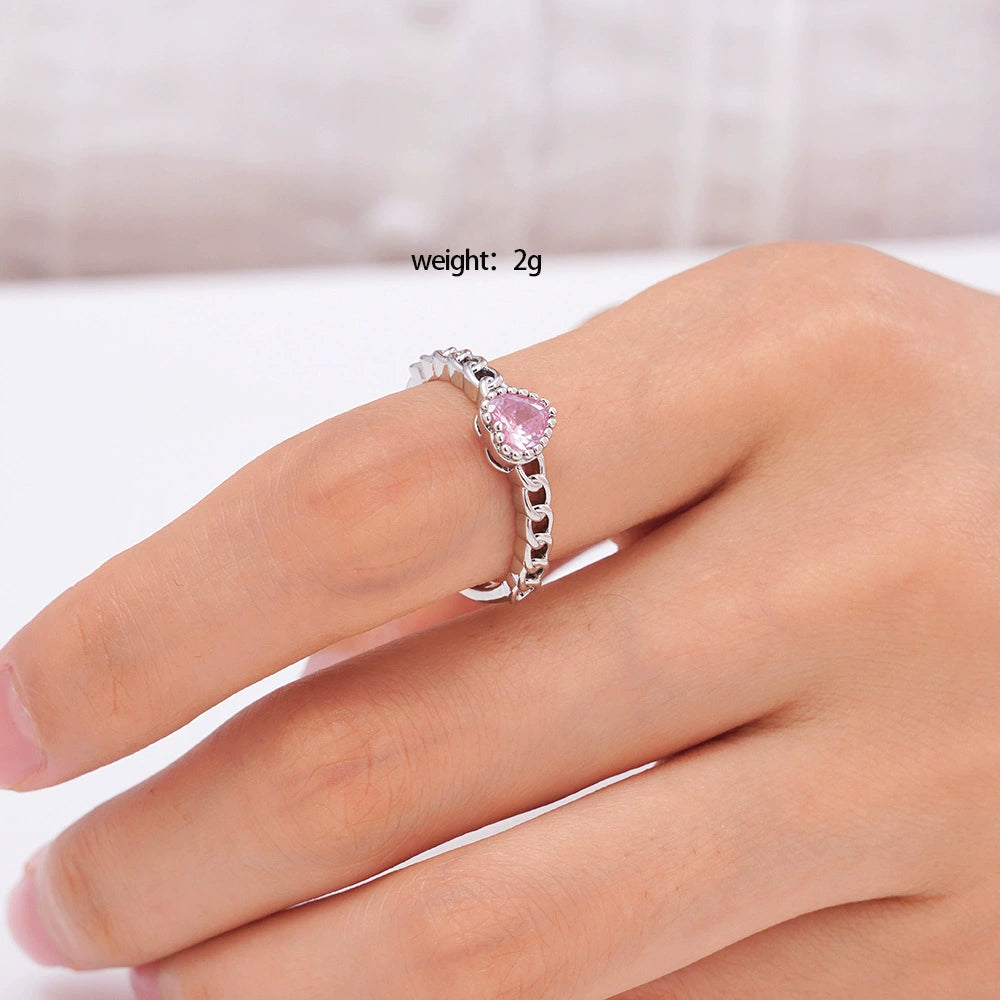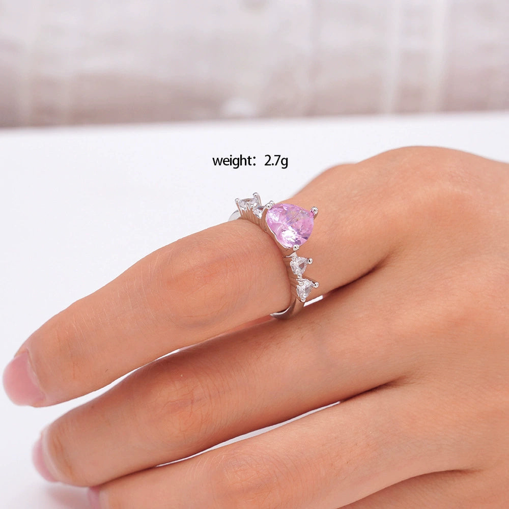 Women's Copper Heartshaped Ring Inlaid With Zircon Electroplated Light Luxury Style