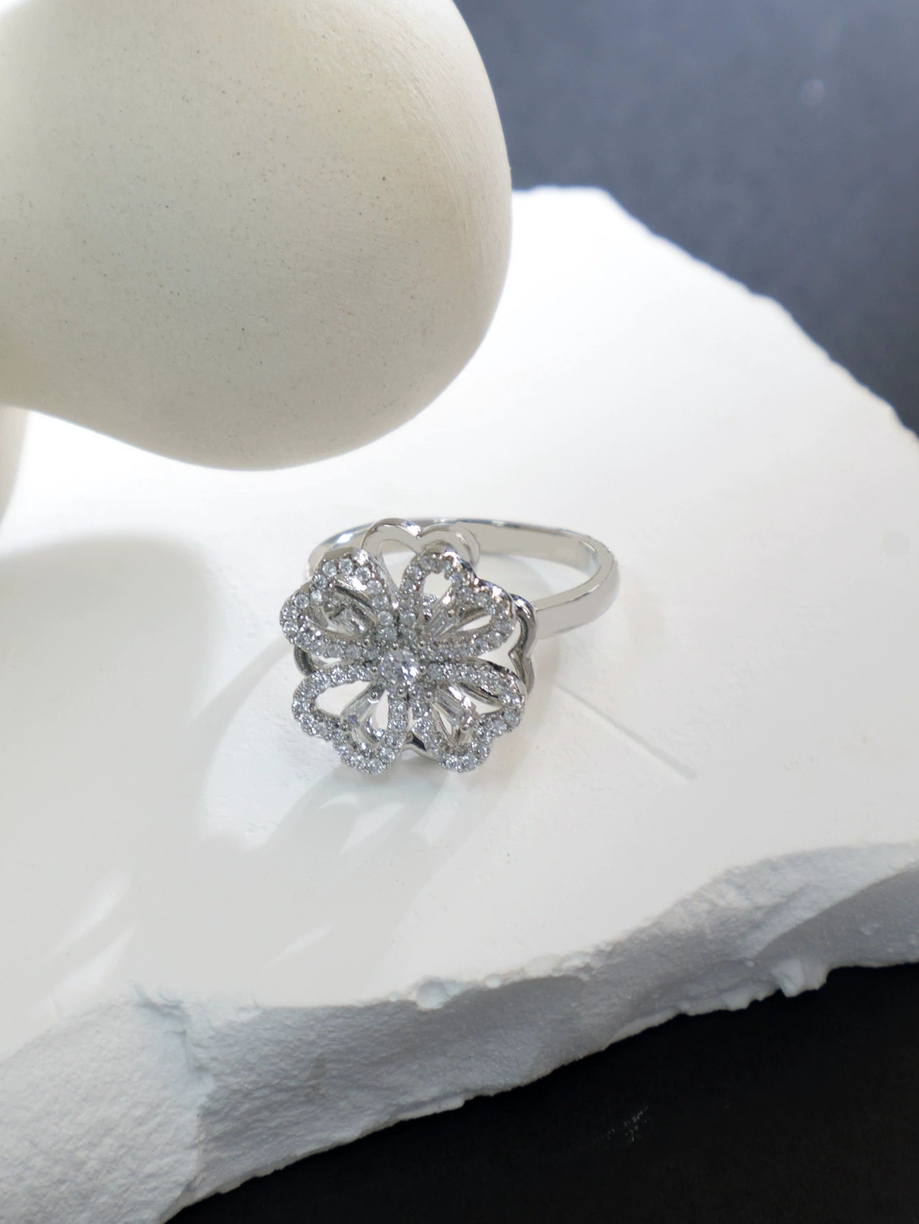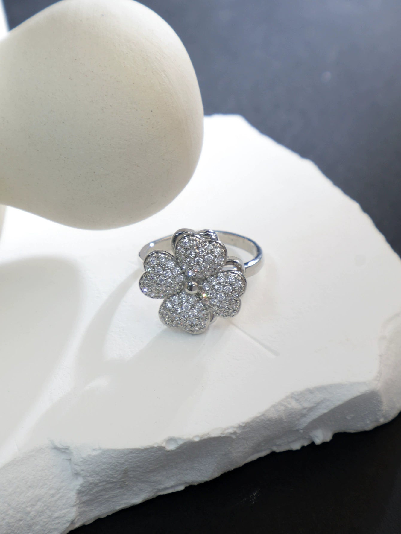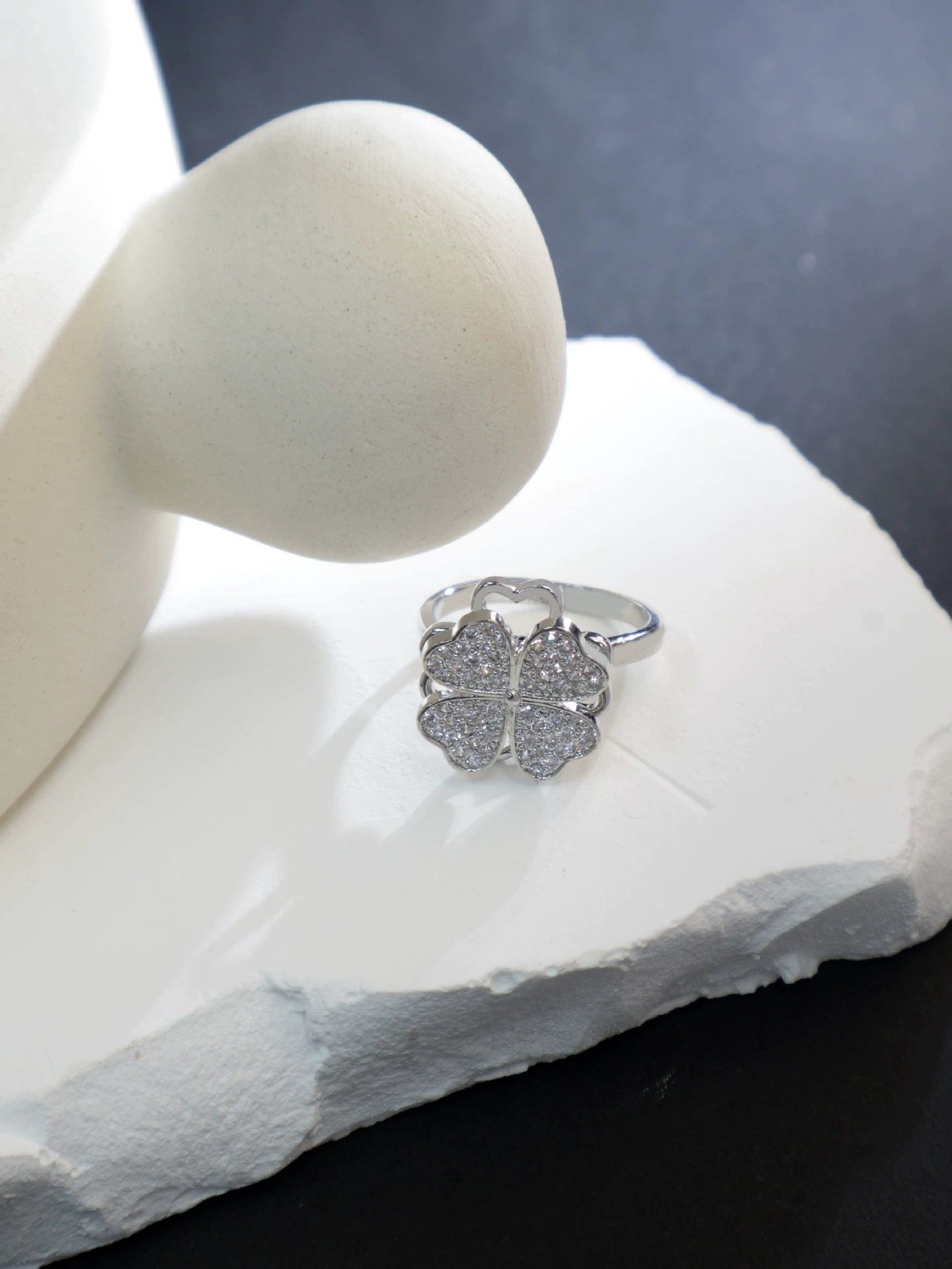 Women's Copper Lucky Fourleaf Clover Fashion Rotating Adjustable Light Luxury Ring Real Gold Plated Nonfading