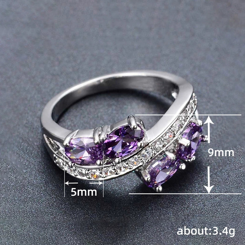 Women's French Romantic Purple Zircon Geometric Copper Ring Accessories