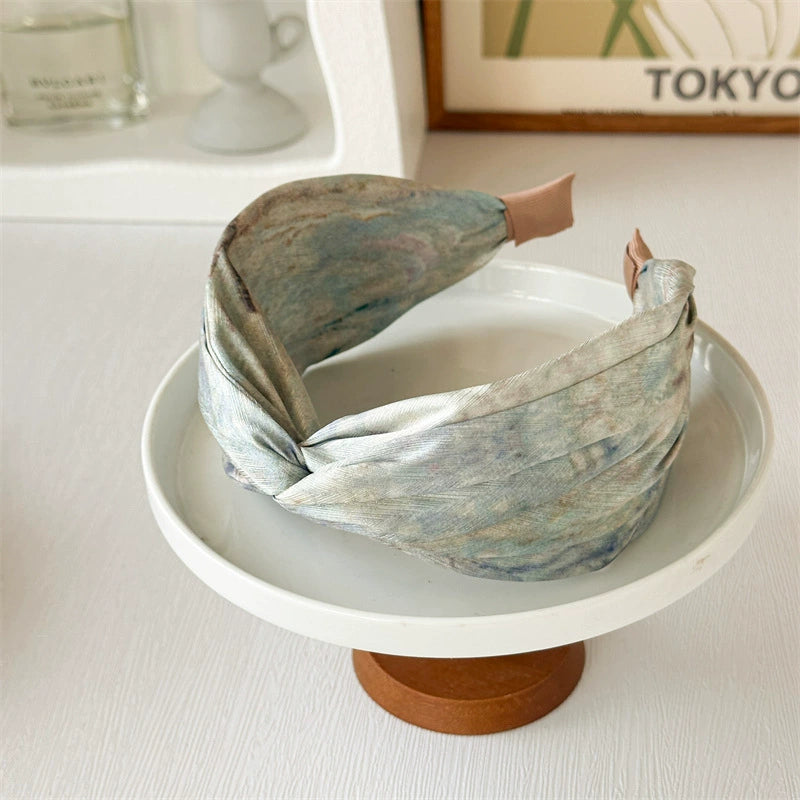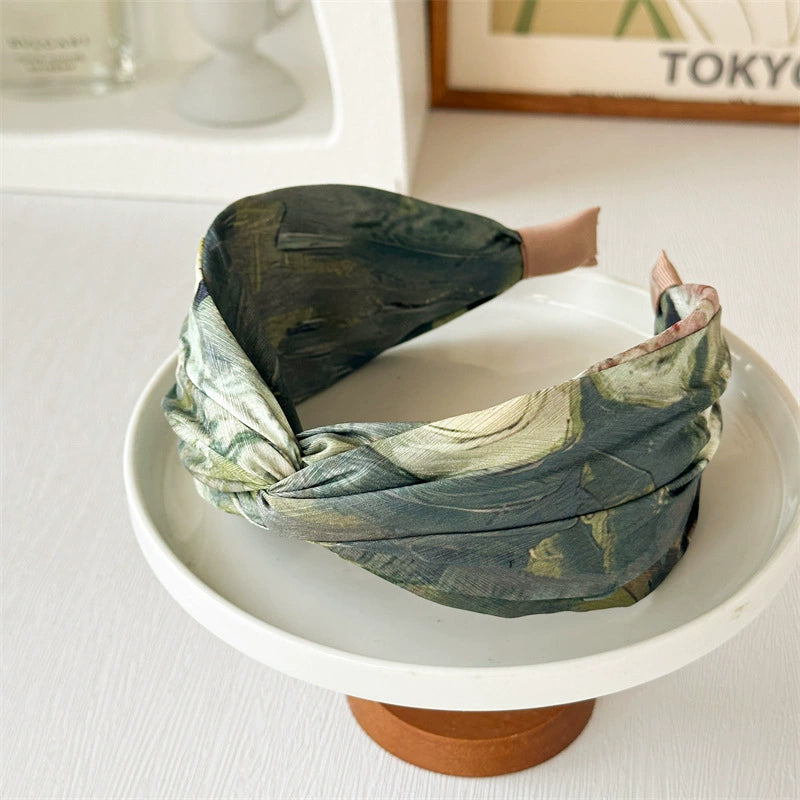 Women's Handmade Fabric Hair Hoop With Monet Oil Painting Style And Retro Cross Design