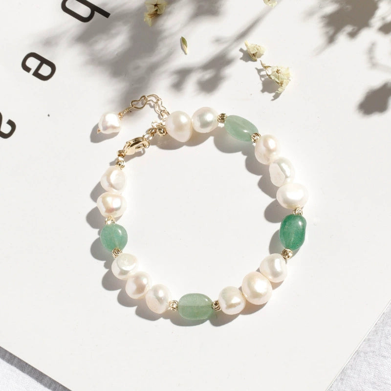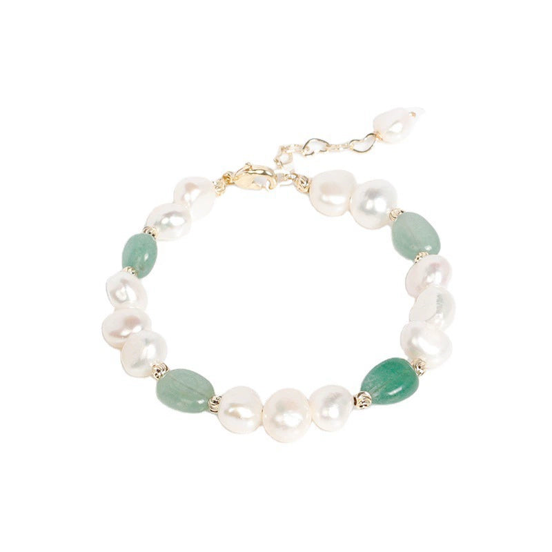 Women's Handmade Natural Freshwater Pearl And Green Dongling Stone Bracelet