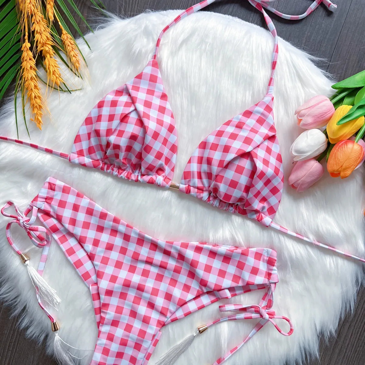 Women'S Plaid 2 Pieces Set Bikinis Swimwear
