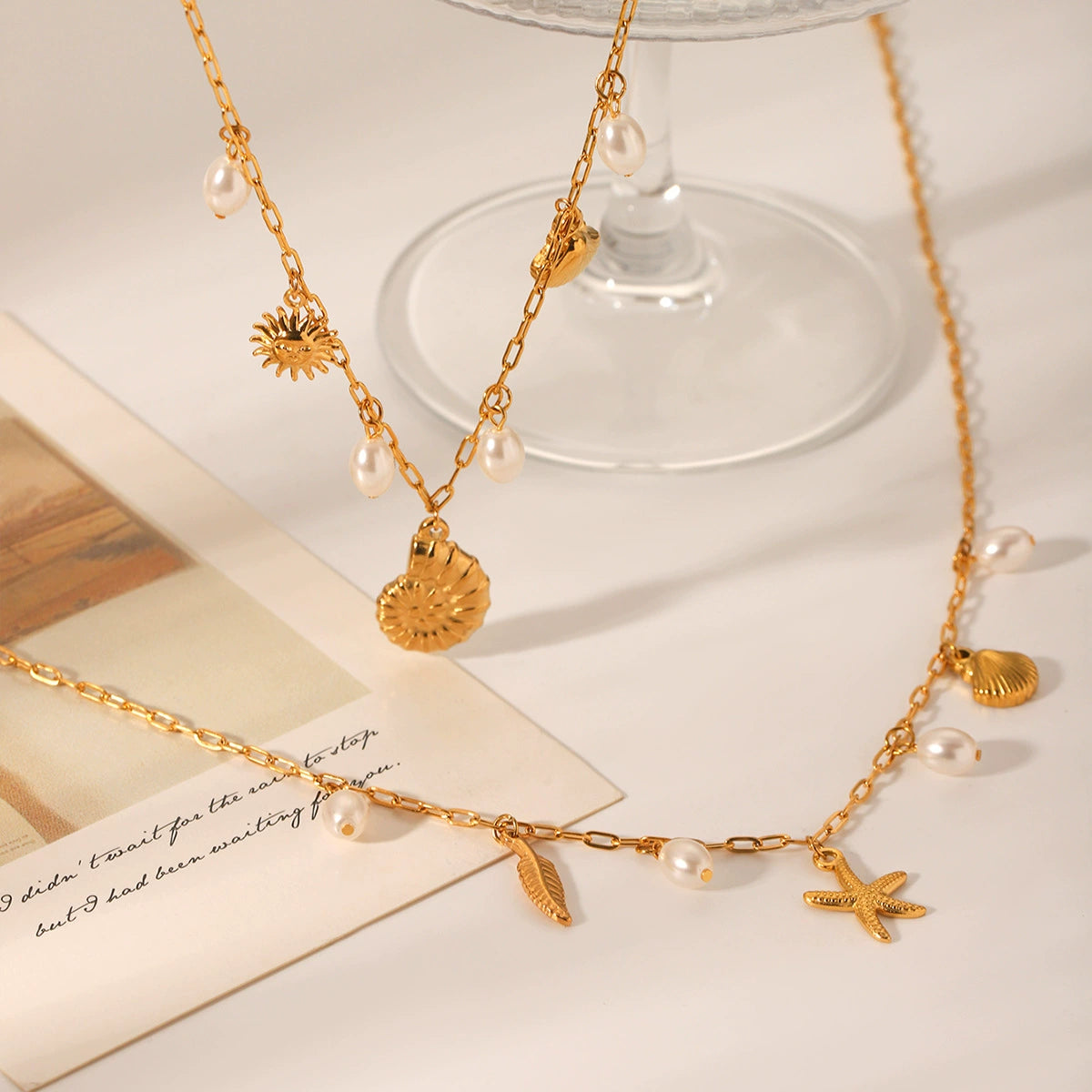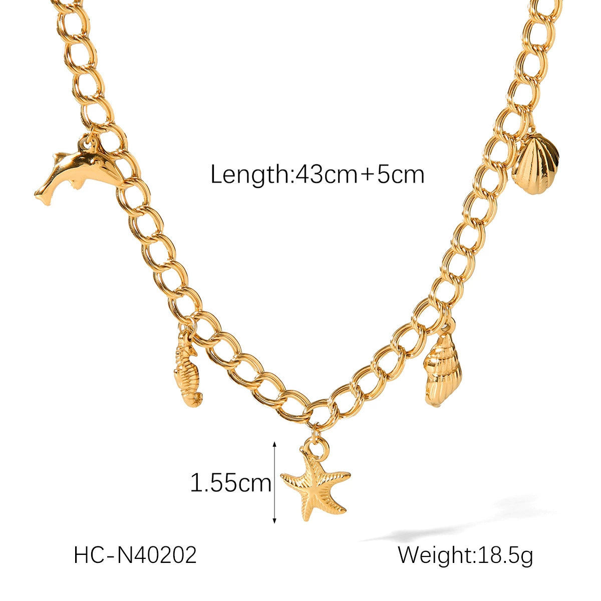 Women's Stainless Steel And Titanium Steel Beach Ocean Wind Pendant Necklace With Starfish Conch Shell Design And Electroplating