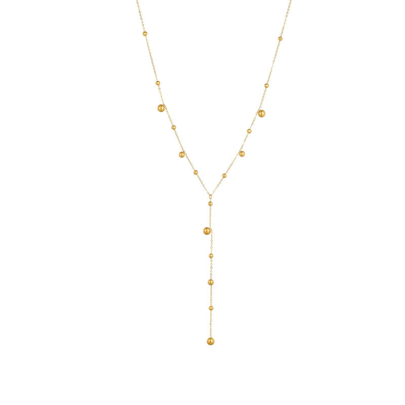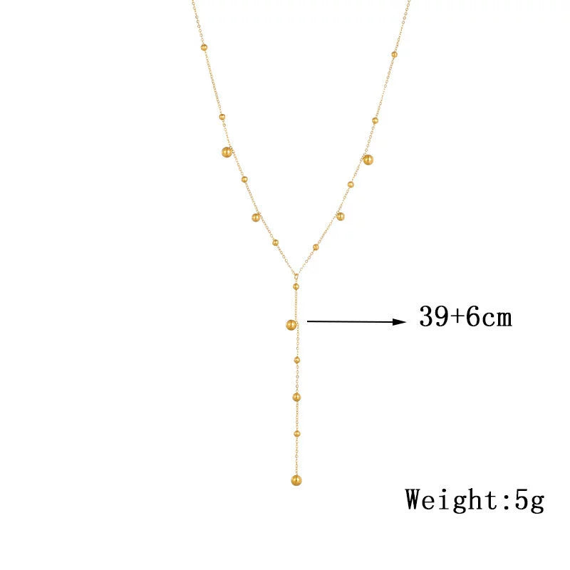 Women's Titanium Steel Jewelry Necklace With Long Tassel Ball Gold Bead Pendant Electroplated In Fashionable And Simple Style